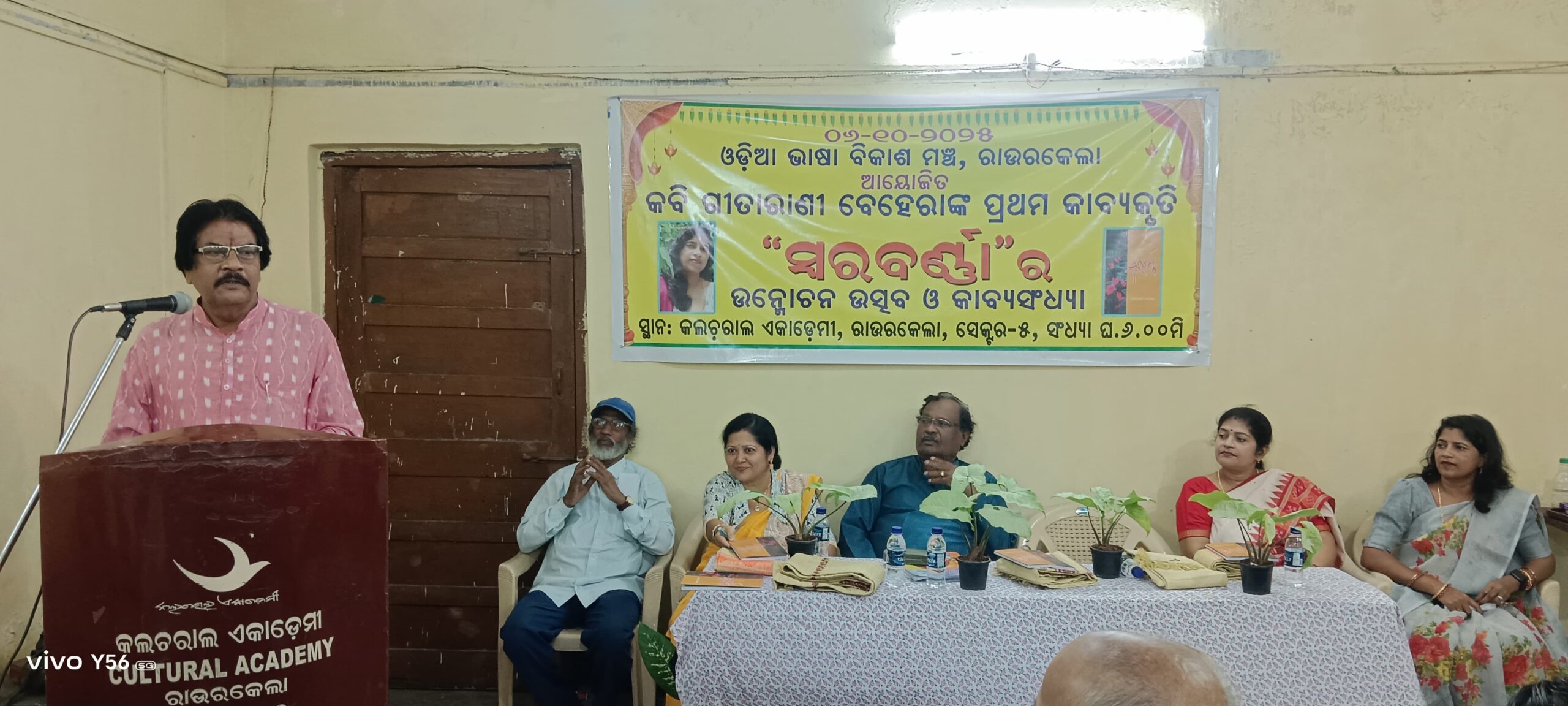 ରାଉରକେଲା: ଓଡ଼ିଆ ଭାଷା ବିକାଶ ମଞ୍ଚ ଆନୁକୂଲ୍ୟରେ କଲଚରାଲ ଏକାଡେମୀ ସଭାଗୃହରେ ସାଧାରଣ ସମ୍ପାଦକ ଆର୍ତ୍ତତ୍ରାଣ ମହାପାତ୍ରଙ୍କ ଆବାହକତ୍ୱରେ ଏବଂ ସଭାପତି ପ୍ରଶାନ୍ତ କୁମାର ପତିଙ୍କ ଅଧ୍ୟକ୍ଷତାରେ ଏକ ସ୍ବତନ୍ତ୍ର କାବ୍ୟ ସନ୍ଧ୍ୟା ସହିତ ଗୀତାରାଣୀ ବେହେରାଙ୍କ କବିତା ସଂକଳନ” ସ୍ବରବର୍ଣ୍ଣା “ଅତିଥି ମାନଙ୍କ ହସ୍ତରେ ଉନ୍ମୋଚିତ ହୋଇଯାଇଅଛି।