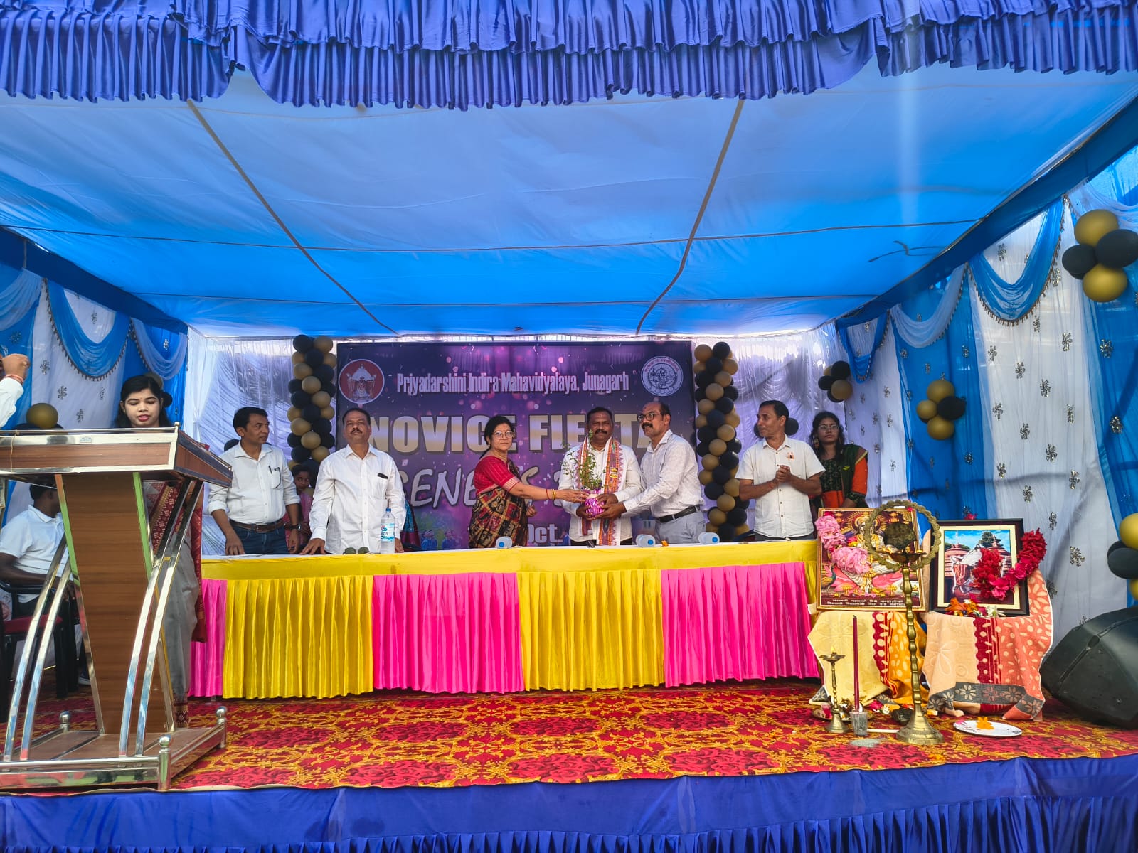 ଜୁନାଗଡ଼ ୧୪/୧୦(ମନୀସ) ପ୍ରିୟଦର୍ଶିନୀ ଇନ୍ଦିରା ମହାବିଦ୍ୟାଳୟ ରେ ନବାଗତ ଯୁକ୍ତ ଦୁଇ ପ୍ରଥମ ବର୍ଷ ଓ ଯୁକ୍ତ ତିନି ବର୍ଷର ଛାତ୍ରଛାତ୍ରୀ ମାନଙ୍କୁ ସ୍ୱାଗତ କରାଯାଇଥିଲା।ଅଧକ୍ଷ ପ୍ରତାପ ବଲ୍ଲଵ ପାଣିଗ୍ରାହୀଙ୍କ ପ୍ରତକ୍ଷ୍ୟ ତତ୍ୱାବଧାନରେ ଅନୁଷ୍ଠିତ ଜେନେସିସ ୨୦୨୫ ଉତ୍ସବରେ ଜୁନାଗଡ଼ ର ବିଶିଷ୍ଟ ସମାଜସେବୀ ଦୁର୍ଗା ପ୍ରସାଦ ନାଏକ ମୁଖ୍ୟ ଅତିଥି ଭାବରେ ଯୋଗଦେଇ ନିଜ ଛାତ୍ର ଜୀବନର ନେତୃତ୍ୱ ସମ୍ପର୍କରେ କହିଥିଲେ। ଏହି କଲେଜର
