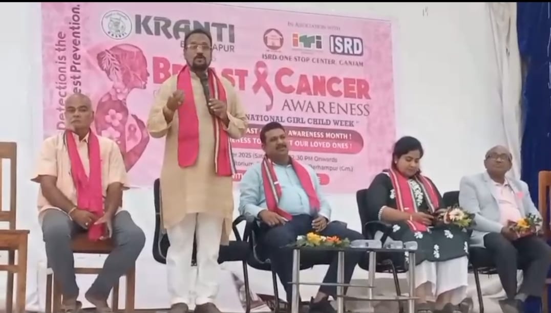 ବ୍ରହ୍ମପୁର ତା.୧୮ .୧୦. ୨୦୨୫ରିଖ: ଅକ୍ଟୋବର ମାସରେ ସ୍ତନ କର୍କଟ ସଚେତନତା ମାସ ସହ ଆନ୍ତର୍ଜାତୀୟ କନ୍ୟା ସନ୍ତାନ ସପ୍ତାହ ପାଳନ ଅବସରରେ ବ୍ରହ୍ମା ନଗରସ୍ଥିତ ଅଗ୍ରଣୀ ସ୍ବେଚ୍ଛାସେବୀ କ୍ରାନ୍ତି ଅନୁଷ୍ଠାନ ଓ ଆଇ ଏସ୍ ଆର ଡି – ୱାନ ଷ୍ଟପ୍ ସେଣ୍ଟର୍ ଗଞ୍ଜାମ , ସରକାରୀ ଆଇ ଟି ଆଇ ମିଳିତ ସହଯୋଗରେ ସରକାରୀ ଆଇ ଟି.ଆଇ ଅଡିଟୋରିୟମଠାରେ ସ୍ତନ କର୍କଟ ରୋଗର ଏକ ପ୍ରେରଣାଦାୟକ ତଥା ସୂଚନାପୂର୍ଣ୍ଣ ସଚେତନତା କାର୍ଯ୍ୟକ୍ରମ ଅନୁଷ୍ଠିତ ହୋଇଯାଇଛି। ବର୍ତ୍ତମାନ ସମୟରେ ସ୍ତନ କର୍କଟ ଏକ ମୁଣ୍ଡବ୍ୟଥାର କାରଣ ସାଜିଛି । କେତେକ କ୍ଷେତ୍ରରେ ଠିକ୍ ସମୟରେ ନିରାକରଣ ଏବଂ ଉପଯୁକ୍ତ ଚିକିତ୍ସା ଦ୍ୱାରା