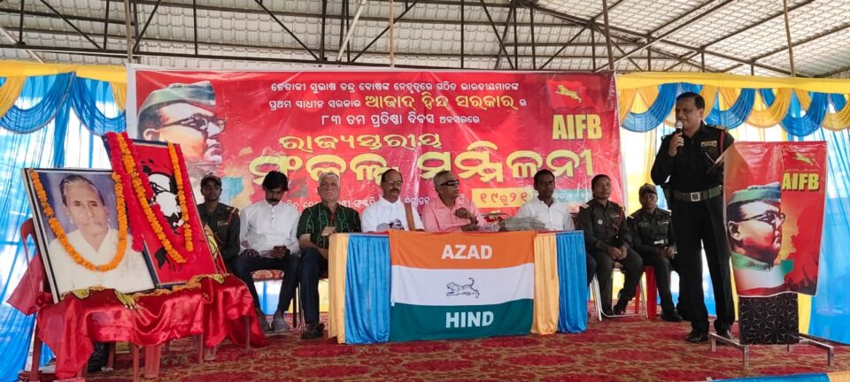 ଜୁନାଗଡ଼, ୨୩/୧୦(ମନୀସ) ନେତାଜୀ ସୁଭାଷ ଚନ୍ଦ୍ର ବୋଷଙ୍କ ନେତୃତ୍ୱରେ ଗଠିତ ଭାରତୀୟ ମାନଙ୍କ ପ୍ରଥମ ସ୍ୱାଧୀନ ସରକାର “ଆଜାଦ ହିନ୍ଦ ସରକାର ” ର ୮୩ ତମ ପ୍ରତିଷ୍ଠା ଦିବସ ଅବସରରେ ନେତାଜୀଙ୍କ ଦ୍ୱାରା ପ୍ରତିଷ୍ଠିତ ରାଜନୈତିକ ଦଳ “ଅଲ ଇଣ୍ଡିଆ ଫରୱାର୍ଡ଼ ବ୍ଲକ ” ପକ୍ଷରୁ ଏକ ରାଜ୍ୟସ୍ତରୀୟ ସଂକଳ୍ପ ସମ୍ମିଳନୀ ଗତ ଅକ୍ଟୋବର ୧୯ ତାରିଖରୁ କଳାହାଣ୍ଡି ଜିଲ୍ଲାର ଜୁନାଗଡ ସ୍ଥିତ ସହିଦ ରେଣ୍ଡୋ ମାଝୀ ସଂସ୍କୃତି ଭବନ ପରିସରରେ ଉଦଯାପିତ ହୋଇଯାଇଛି l ଫରୱାର୍ଡ଼ ବ୍ଲକ ର କଳାହାଣ୍ଡି ଜିଲ୍ଲା ସମ୍ପାଦକ ଗୟାରମ ପୂଜାରୀ ଫରୱାର୍ଡ଼ ବ୍ଲକ ସଂଗ୍ରାମୀ ପତାକାକୁ ଉତ୍ତୋଳନ କରିଵା ପରେ ଆରମ୍ଭ ହୋଇଥିବା ଏହି କାଯ୍ୟକ୍ରମକୁ ବରଗଡ ଜିଲ୍ଲାର ମହିଳା ଶ୍ରମିକ ସବିତା ମିର୍ଦ୍ଧା ନେତାଜୀ ସୁଭାଷ ଚନ୍ଦ୍ର ବୋଷ ଓ କ୍ୟାପଟେନ ଲଷ୍ମୀ ଇନ୍ଦିରା ପଣ୍ଡାଙ୍କ ଫଟୋ ଚିତ୍ର ସମ୍ମୁଖରେ ପ୍ରଦୀପ ପ୍ରଜ୍ଜଳନ