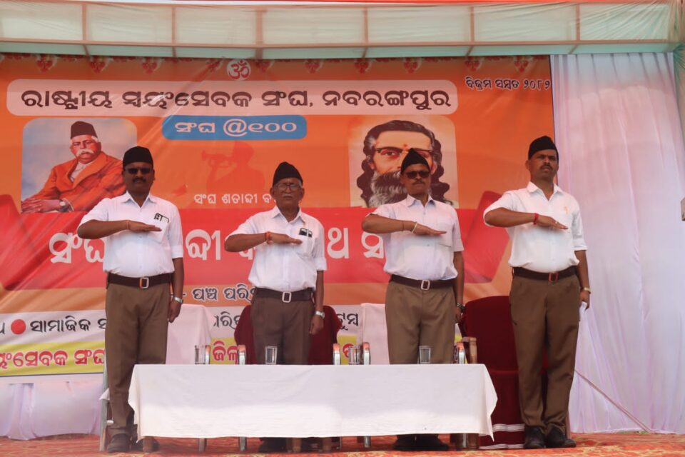 ନବରଙ୍ଗପୁର:(୨୨|୧୦)(ରବି ନାରାୟଣ ମହାନ୍ତି)ରାଷ୍ଟ୍ରୀୟ ସ୍ୱୟଂସେବକ ସଂଘ ଏହାର ଶତାବ୍ଦୀ ବର୍ଷ ପାଳନ ପାଇଁ ଦେଶର ବିଭିନ୍ନ ସ୍ଥାନରେ ପଥ ସଂଚଳନ ଆୟୋଜନ କରିଥିଲା । ଏହା ସହିତ ବର୍ଷସାରା ବିଭିନ୍ନ କାର୍ଯ୍ୟକ୍ରମ ଏବଂ ଉତ୍ସବ ପାଳନ କରାଯାଉଛି । ରାଷ୍ଟ୍ରୀୟ ସ୍ୱୟଂସେବକ ସଂଘ , ନବରଙ୍ଗପୁର ଶାଖା ମଧ୍ୟ ଏହି ଶତବାର୍ଷିକ ଉତ୍ସବ ପାଳନ ପାଇଁ ଅକ୍ଟୋବର ୧୯ ତାରିଖ ରବିବାର ଏକ ପଥସଂଚଳନ ଆୟୋଜନ କରିଥିଲା । ହଜାର ହଜାର ସ୍ୱୟଂସେବକ ପୂର୍ଣ୍ଣ ଗଣବେଶ ପିନ୍ଧି ଏହି ପଦଯାତ୍ରାରେ ଅଂଶଗ୍ରହଣ କରିଥିଲେ,
