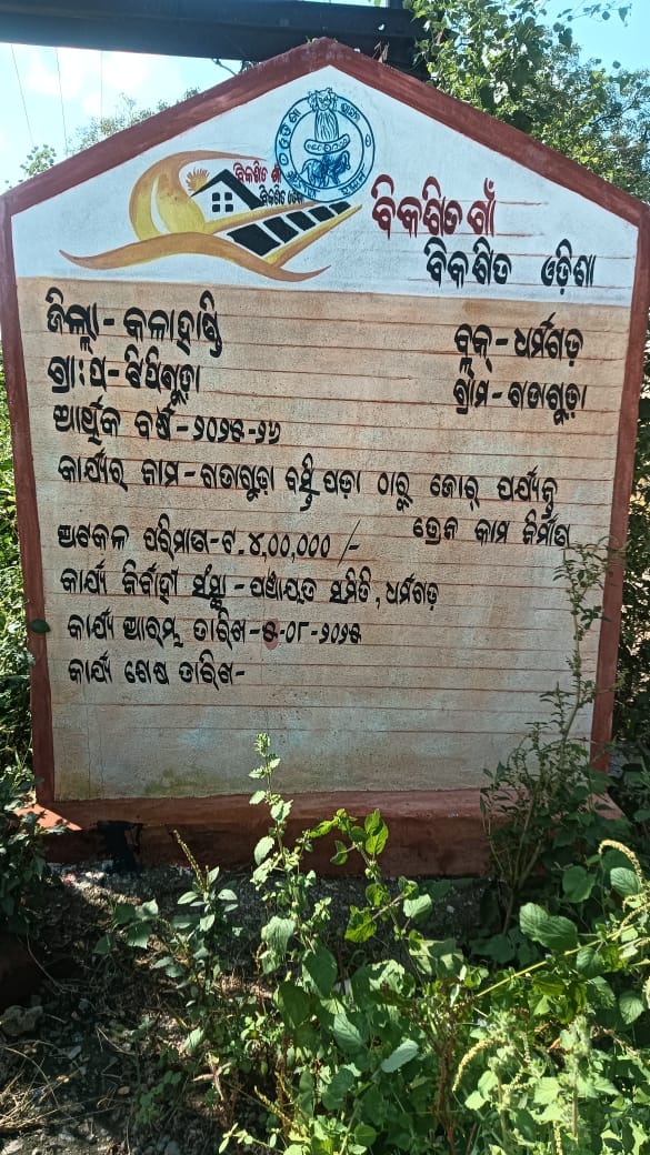 ଯେ କୌଣସି ସରକାରୀ କାର୍ଯ୍ୟ ହେଲେ ସାଧାରଣ ଭାବେ ଲୋକଙ୍କ ସୂଚନା ପାଇ ଉନ୍ନୟନ କାମ ଆରମ୍ଭରେ ସୂଚନା ଫଳକ ଦିଆଯାଇଥାଏ।ଜନସାଧାରଣ ଏହି ସୂଚନା ଫଳକ ମାଧ୍ୟମରେ କାମ ର ସମ୍ପୂର୍ଣ୍ଣ ବିବରଣୀ ପାଇଁ ଥାଆନ୍ତି।ତେବେ ଧର୍ମଗଡ ବ୍ଲକ ଅଧିନ ଟିପିଗୁଡା ପଞ୍ଚାୟତ ଗତାଗୁଡା ଗ୍ରାମ ଠାରେ ବିକଶିତ ଗାଁ ବିକଶିତ ଓଡିଶା ଯୋଜନା ରେ ଗତାଗୁଡା ବସ୍ତି ପଡା ଠାରୁ ଜୋର ପର୍ଯ୍ୟନ୍ତ କଂକ୍ରିଟ ରାସ୍ତା କାମ ଶେଷ ହୋଇଛି।ଏଥିପାଇଁ ଆର୍ଥିକ ବର୍ଷ ୨୦୨୫-୨୦୨୬ ରେ ମୋଟ ଅଟକଳ ପରିମାଣ ୪ଲକ୍ଷ