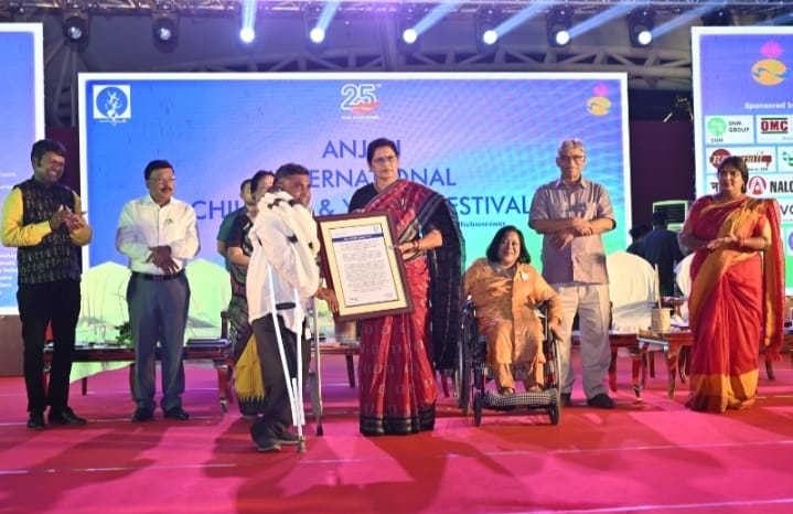 କର୍ଲାମୁଣ୍ଡା, (ସୁଶାନ୍ତ ରଣା): ଭୁବନେଶ୍ବରସ୍ଥିତ ଆଦିବାସୀ ପ୍ରଦର୍ଶନୀ ପଡ଼ିଆରେ ସ୍ବେଚ୍ଛାସେବୀ ଅନୁଷ୍ଠାନ ‘ସ୍ୱାଭିମାନ’ ପକ୍ଷରୁ ଆୟୋଜିତ ୨୫ତମ ଅନ୍ତର୍ଜାତୀୟ ଅଞ୍ଜଳି ଶିଶୁ ଏବଂ ଯୁବ ଉତ୍ସବ ରେ କଳାହାଣ୍ଡି ଜିଲ୍ଲା କର୍ଲାମୁଣ୍ଡା ବ୍ଲକ ଜୋନ୍ ୨ ର ଜିଲ୍ଲା ପରିଷଦ ସଦସ୍ୟ ତଥା କଳାହାଣ୍ଡି ଦିବ୍ୟାଙ୍ଗ ମଞ୍ଚ ର ସଭାପତି ଶ୍ରୀଯୁକ୍ତ ସୁରେଶ ଚୋୖଧୁରୀ ଙ୍କୁ ଅଞ୍ଜଳି ଆୱାର୍ଡ଼ ୨୦୨୫ ପ୍ରଦାନ କରାଯାଇଛି I ଏହି ଉତ୍ସବରେ ଓଡ଼ିଶା ସରକାରଙ୍କ ମାନ୍ୟବର ଉପ ମୁଖ୍ୟମନ୍ତ୍ରୀ ଶ୍ରୀମତୀ ପ୍ରଭାତୀ ପରିଡା ଉପସ୍ଥିତ ରହି ଶ୍ରୀ ଚୋୖଧୁରୀ ଙ୍କୁ ଉପଢୌକନ ମାନପତ୍ର ସହିତ ପଚାଶ ହଜାର ଅର୍ଥରାଶି ପ୍ରଦାନ କରିଥିଲେ, ଅନୁଷ୍ଠାନ ପ୍ରତିଷ୍ଠାତା ଡ଼ଃ ଶ୍ରୁତି ମହାପାତ୍ର ଙ୍କ ସଭାପତିତ୍ବରେ ଅନୁଷ୍ଠିତ ଏହି କାର୍ଯ୍ୟକ୍ରମରେ ଅତିଥି ଭାବେ ପଦ୍ମଶ୍ରୀ ପ୍ରଫେସର ପ୍ରିୟମ୍ବଦା ମହାନ୍ତି, ବାଲୁକା ଶିଳ୍ପୀ ସୁଦର୍ଶନ ପଟ୍ଟନାୟକ, ସିୱାଇଏସଡ଼ି ର ପ୍ରତିଷ୍ଠାତା ଜଗଦାନନ୍ଦ ଏବଂ ଗାୟତ୍ରୀ କର ଉପସ୍ଥିତ ଥିଲେ I