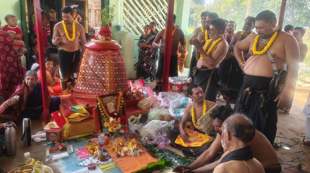ଡାବୁଗାଁ, ୧୪/୧୧ (ମ.ନି.ସ.)- ନବରଙ୍ଗପୁର ଜିଲା ଡ଼ାବୁଗାଁ ବ୍ଲକ ଅଧୀନ ଜୟନ୍ତୀନଗର ସ୍ଥିତ ରାଧାକୃଷ୍ଣ ମନ୍ଦିର ଠାରେ ଆୟାପ୍ପା ଭକ୍ତ ଙ୍କ ଇରୁମୁଡି ପୂଜା ଶୁକ୍ରବାର ଅନୁଷ୍ଠିତ ହୋଇଯାଇଛି । ଉକ୍ତ ପୂଜାରେ ଜୟପୁର ର ରାବଣା ଗୁରୁସ୍ଵାମୀ ୱାଇ. ରାବଣା ସ୍ଵାମୀ ଯୋଗ ଦେଇ ପୂଜାର୍ଚ୍ଚନା କରି ବ୍ରତଧାରୀ ଙ୍କ ମୁଣ୍ଡରେ ଇରୁମୁଡୁ ଧାରଣ କରାଇଥିଲେ । ଏଥିରେ ଭକ୍ତ ମାନେ ମନସ୍କାମନା କରି ଯେ କୌଣସି
