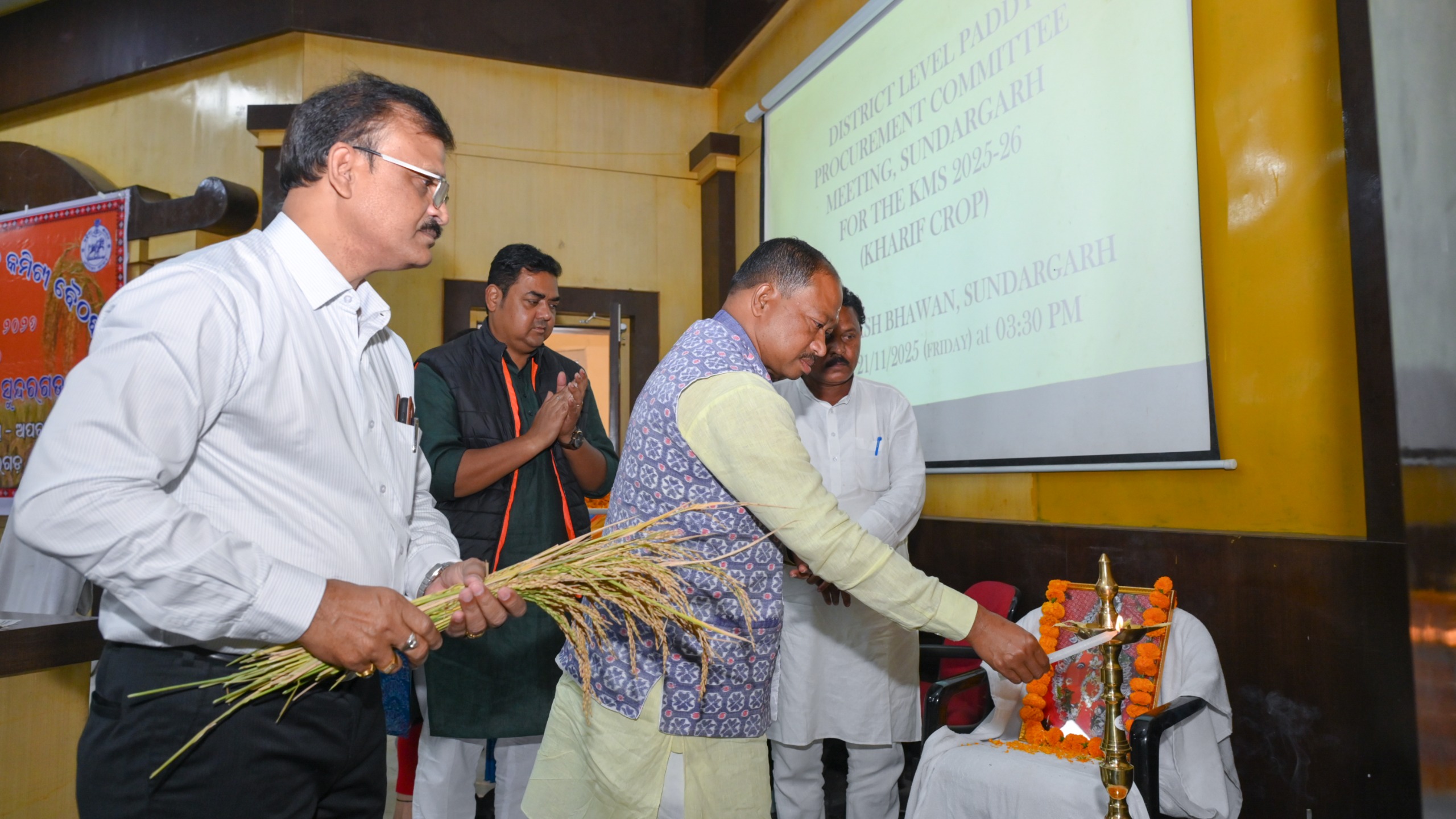ସୁନ୍ଦରଗଡ:- ୨୧/୧୧/୨୫: ସୁନ୍ଦରଗଡ ଜିଲ୍ଲା ସ୍ତରୀୟ ଧାନ ସଂଗ୍ରହ କମିଟି ବୈଠକ ଆଜି ସ୍ଥାନୀୟ ବିକାଶ ଭବନ ଠାରେ ଅନୁଷ୍ଠିତ ହୋଇଯାଇଛି । ଜିଲ୍ଲାପାଳ ଡ଼ା. ଶୁଭଙ୍କର ମହାପାତ୍ରଙ୍କ ସଭାପତିତ୍ବରେ ଆୟୋଜିତ ହୋଇଥିବା ଏହି ବୈଠକରେ ମାନ୍ୟବର ଉପ – ବାଚସ୍ପତି, ଓଡ଼ିଶା ବିଧାନସଭା ତଥା ମାନ୍ୟବର ବିଧାୟକ ତଳସରା, ଶ୍ରୀ ଭବାନୀ ଶଙ୍କର ଭୋଇ,ମାନ୍ୟବର ସଦର ବିଧାୟକ ଶ୍ରୀ ଯୋଗେଶ କୁମାର ସିଂ , ମାନ୍ୟବର ରାଜଗାଙ୍ଗପୁର ବିଧାୟକ ଡ଼।. ସି.ଏସ. ରାଜେନ ଏକ୍କା, ମାନ୍ୟବର ବିଧାୟକ, ବଣାଇ ଶ୍ରୀ ଲକ୍ଷ୍ମଣ ମୁଣ୍ଡା ଯୋଗ ଦେଇ ଜିଲ୍ଲାର ଖରିଫ ଧାନ ସଂଗ୍ରହ ପ୍ରକିୟା ଉପରେ ଆଲୋଚନା କରିଥିଲେ।