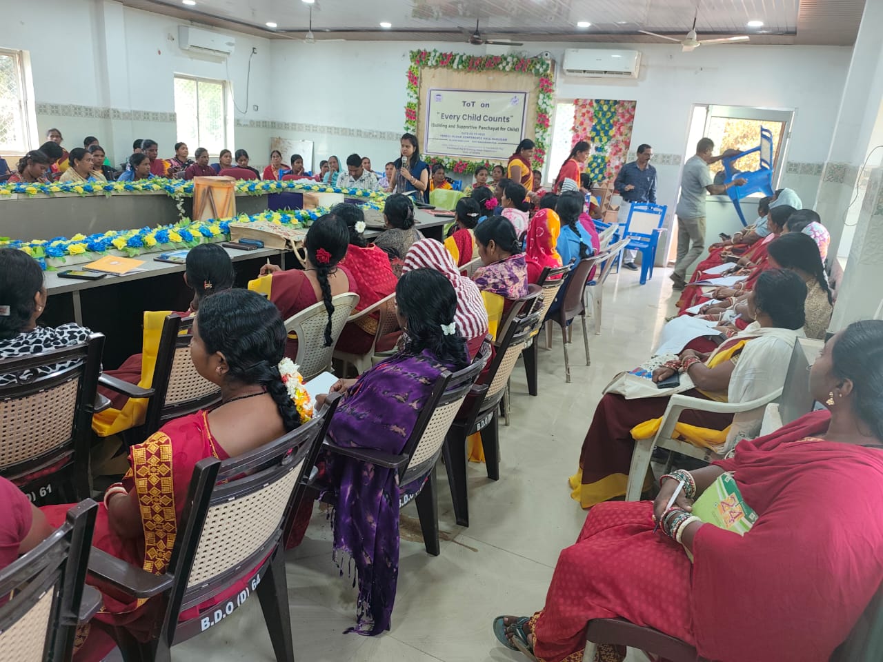 ନିର୍ବାହୀ ଅଧିକାରୀ ଏ.ଡି ପ୍ରସାଦ ଓ ପେସା ସଂଯୋଜକ ଶୁଭଶ୍ରୀ ମହାଙ୍କୁଡ ପ୍ରମୁଖ ଯୋଗ ଦେଇ ତାଲିମ ଦେଇଥିଲେ | ଏଥିରେ ପିଲାମାନଙ୍କୁ ପ୍ରଭାବିତ କରୁଥିବା କ୍ଷତିକାରକ ଅଭ୍ୟାସ, ଶିଶୁ କିପରି କ୍ଷତିଗ୍ରସ୍ତ ହୁଏ, ଶିଶୁ ଲିଙ୍ଗ ଅନୁପାତ ହ୍ରାସ, ବାଲ୍ୟ ବିବାହ, କୁପୋଷଣ ଏବଂ ଶାରେରିକ ଅଭିବୃଦ୍ଧିରେ ବାଧକ, ଶିଶୁ ଶ୍ରମ, ସ୍କୁଲ ଛାଡୁଥିବା ପିଲା ହାର, ଶିଶୁ ଚାଲାଣ, ପିଲା ମାନଙ୍କ ବିରୁଦ୍ଧରେ ସଇବର ଅପରାଧ, ଶାରେରିକ/ଯୌନ ହିଂସ ଆଦି ଉପରେ ତାଲିମ ଦିଆଯାଇଥିଲା | ଏଥିରେ ସରପଞ୍ଚ ୪ ଜଣ, ସମିତି ସଭ୍ୟ – ୧ ଜଣ, ପଞ୍ଚାୟତ ନିର୍ବାହୀ ଅଧିକାରୀ ୩ ଜଣ, ଏଡିଇଓ- ୨ ଜଣ, ଅଙ୍ଗନୱାଡି କର୍ମୀ ୪୦ ଜଣ ଓ ଆଶା ୪୦ ଜଣ ମୋଟ ୯୦ ଜଣ ତାଲିମ ନେଇଥିଲେ |