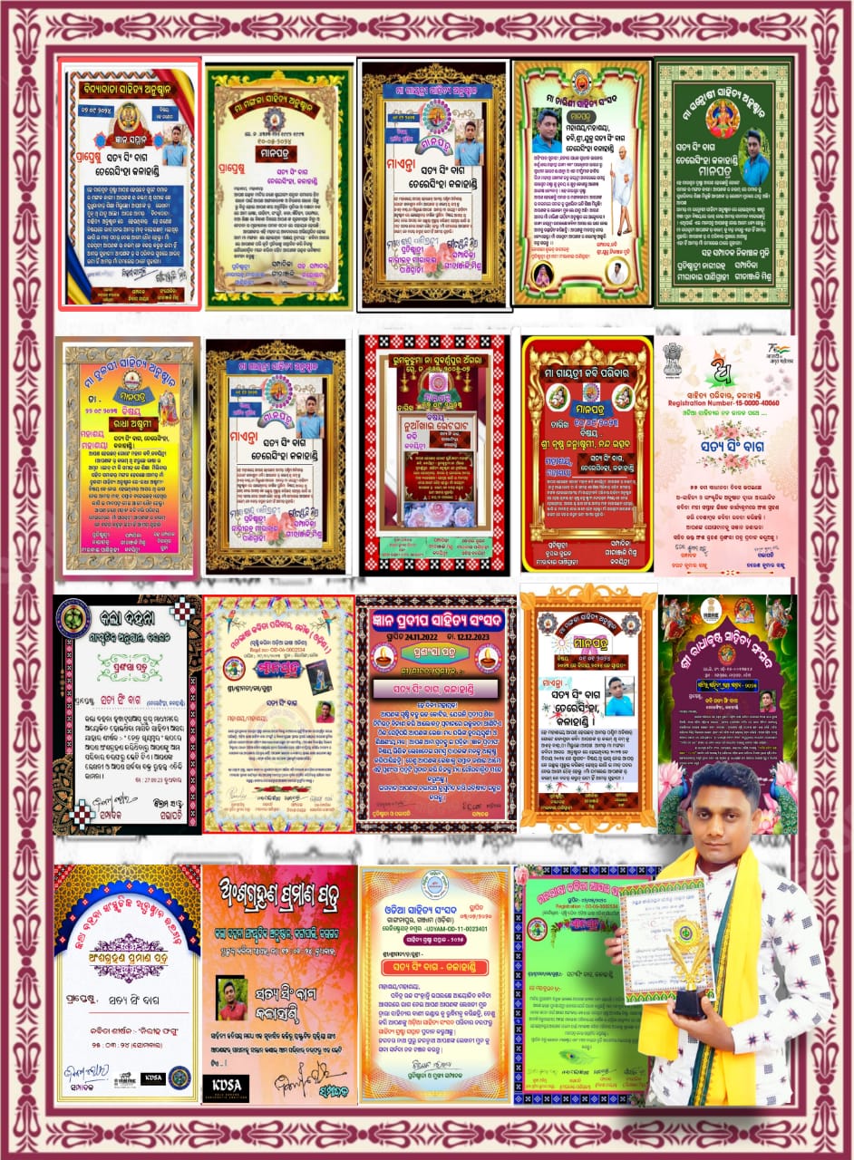 କଳାହାଣ୍ଡି ଜିଲ୍ଲା ତେଲନଦୀ କୂଳରେ ବହୁ ଜନ ବହୁଳ ଗ୍ରାମ ତେରେସିଂହା ରେ ଉପସ୍ଥିତ ମାତା ଗୋମତୀ ବାଗ ଓ ପିତା ଇଶ୍ୱର ବାଗ ଙ୍କ ଏକଅଳି ବଳା ଯୁବକବି ସତ୍ୟ ସିଂ ବାଗ ଙ୍କୁ ତାଙ୍କ କଲମ ରୁ ଝରୁଥିବା କବିତା ଲିଖନୀରେ ମା ବୀଣାପାଣି ଙ୍କ କୃପାରୁ ଅନେକ ସାହିତ୍ୟ ଅନୁଷ୍ଠାନ ଠାରୁ ସମ୍ମାନ ପ୍ରାପ୍ତ ଯୋଗ୍ୟତା ହାସଲ କରିପାରିଛନ୍ତି !! ଯଥା ସମ୍ମାନ ଗୁଡିକ ହେଲା ସିଦ୍ଧାର୍ଥ ସାହିତ୍ୟ ସମ୍ମାନ, ଭକ୍ତ ସାଲବେଗ ସାହିତ୍ୟ ସମ୍ମାନ, ମାଟିର ସାହିତ୍ୟ ସ୍ରଷ୍ଟା ସମ୍ମାନ, ସାହିତ୍ୟ ପୁତ୍ର ସମ୍ମାନ, ମା ଭାରତୀ ସାହିତ୍ୟ ସମ୍ମାନ, ବିଦ୍ୟା ଦାତା ଜ୍ଞାନ ସମ୍ମାନ, ଓଡ଼ିଆ ସାହିତ୍ୟ ସମ୍ମାନ, କଲା ଦହନା କଳାପଟା ସମ୍ମାନ, ଜ୍ଞାନ ପ୍ରଦୀପ ସାହିତ୍ୟ ସମ୍ମାନ ଇତ୍ୟାଦିରେ ବେଶ ପରିଚିତ।