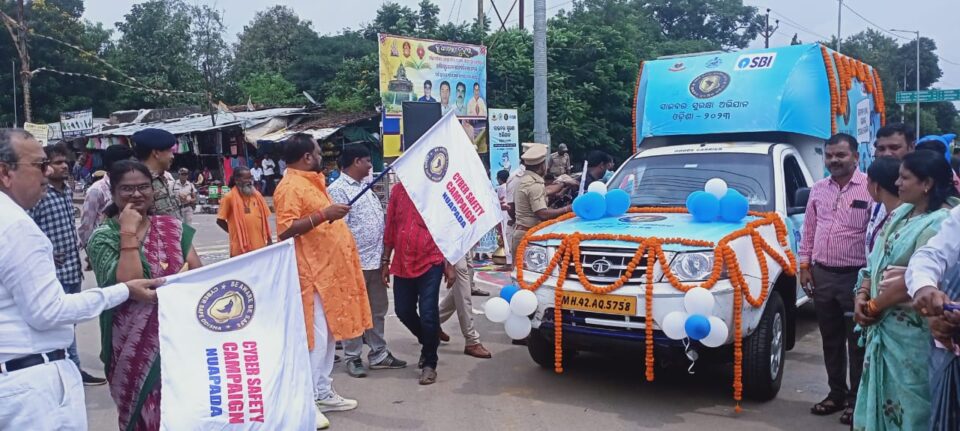 ହୋଇଅଛି। ଚଳିତ ମାସ କୁ ସାଇବର ଅପରାଧ ନିୟନ୍ତ୍ରଣ ମାସ ବୋଲି ପ୍ରକାଶ କରିଛନ୍ତି। ନୂଆପଡ଼ା ଜିଲ୍ଲା ରେ ଚଳିତ ବର୍ଷ ୨୫ ଗୋଟି ସାଇବର ଅପରାଧ ମାମଲା ରୁଜୁ ହୋଇଥିବା ଜଣାପଡିଅଛି। ଅତିଥି ମାନେ ସଚେତନ ରଥ କୁ ପତାକା ଦେଖାଇ ଶୁଭାରମ୍ଭ କରିଥିବା ବେଳେ ଜିଲ୍ଲାର ବିଭିନ୍ନ ଗ୍ରାମ, ଜନ ଗହଳି ବୁଲି ଜନ ସଚେତନ କରିବ।