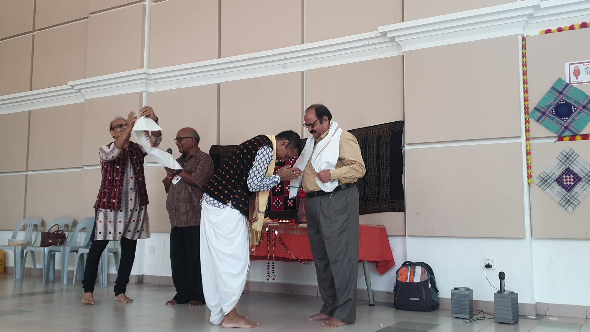 କାର୍ଯ୍ୟକ୍ରମରେ ମୁଖ୍ୟଅତିଥି ଭାବରେ ନର୍ଲା ବ୍ଲକ ଭାନପୁର ଗ୍ରାମର ଅବସରପ୍ରାପ୍ତ ଶିକ୍ଷକ ଗୌରଚନ୍ଦ୍ର ସାହୁ ଯୋଗଦାନ କରି ଆମ ସଂସ୍କୃତି ଓ ପରମ୍ପରା କେତେ ମହାନ୍, ସେ ବାବଦରେ ମତବ୍ୟକ୍ତ କରିଥିଲେ। ଏହି ଅବସରରେ ଆଲୋକ ପଣ୍ଡା ଓ ଦୀପକ ସାହୁ ନୂଆଁ ସମ୍ବଲପୁରୀ ଗାମୁଛା ଗୌରଚନ୍ଦ୍ର ସାହୁ ଓ ପ୍ରସନ୍ନ ଜେନାଙ୍କୁ ଉପଢୌକନ ପ୍ରଦାନ କରି ସମ୍ବର୍ଦ୍ଧିତ କରିଥିଲେ।