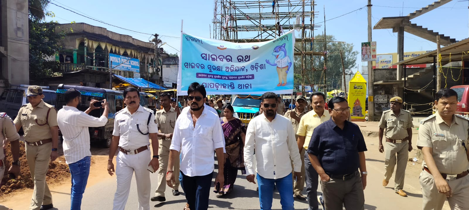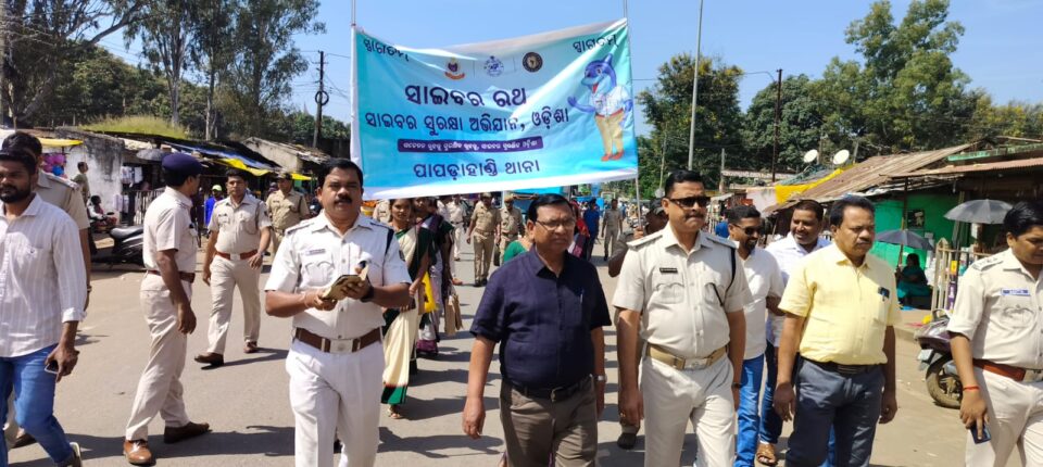 ପାପଡାହାଣ୍ଡି,05/10, ମନିସ —ନବରଙ୍ଗପୁର ଜିଲ୍ଲା ପାପଡାହାଣ୍ଡି ପୋଲିସ ତରଫରୁ ଗୁରୁବାର ସଦର ଠାରେ ସାଇବର ସୁରକ୍ଷା ଅଭିଯାନ ନେଇ ସଚେତନ କାର୍ଯ୍ୟକ୍ରମ ଅନୁଷ୍ଠିତ ହୋଇଯାଇଛି | ନବରଙ୍ଗପୁରରୁ ଆସିଥିବା ସାଇବର ରଥକୁ ବସଷ୍ଟାଣ୍ଡ ଛକରେ ପୋଲିସ ଓ ଗ୍ରାମବାସୀଙ୍କ ତରଫରୁ ଭବ୍ୟ ସମ୍ବର୍ଦ୍ଧନା ଦିଆଯାଇଥିଲା | ନାଚ, ଗୀତ,ବାଜା ବଜାଇ ଏକ ଶୋଭାଯାତ୍ରାରେ