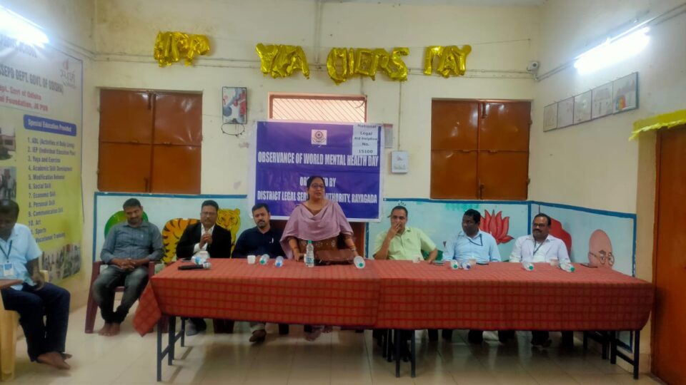 ରାୟଗଡା ନୂତନ ଜ୍ଞାନ ବର୍ଧନି ସତନ୍ତ୍ର ବିଦ୍ୟାଳୟ, କୋଲନରା ଠାରେ ଜିଲ୍ଲା ଆଇନ ସେବା ପ୍ରାଧିକରଣ,ରାୟଗଡା ତରଫରୁ ବିଶ୍ଵ ମାନସିକ ସ୍ବାସ୍ଥ୍ୟ ଦିବସ ପାଳିତ ହୋଇଯାଇଛି I ଏହି କାର୍ଯ୍ୟକ୍ରମ କୁ ରାୟଗଡା ଜିଲ୍ଲା ଆଇନ୍ ସେବା ପ୍ରାଧିକରଣ ର ସଚିବ ଶ୍ରୀମତି ନିବେଦିତା ପଣ୍ଡା ଅଧ୍ୟକ୍ଷତା ରେ ଅନୁଷ୍ଟିତ ଏହି କାର୍ଯ୍ୟକ୍ରମରେ ବିଶ୍ଵ ମାନସିକ ସ୍ବାସ୍ଥ୍ୟ ଦିବସ ପାଳିତ ହେବା ସହିତ ନାଲସା ସ୍କିମ, ମେଣ୍ଟାଲ ହେଲଥ ଆକ୍ଟ ଓ ସରକାରଙ୍କ ତରଫରୁ ମାନସିକ ପିଲାମାନଙ୍କ ପାଇ ଥିବା ବିଭିନ୍ନ ସରକାରୀ ଯୋଜନା ଉପରେ ଆଲୋଚନା ହୋଇଥିଲା I ଅନ୍ୟ ପ୍ରମୁଖ ଅତିଥି ମାନଙ୍କ ମଧ୍ୟରେ ରାୟଗଡା ଜିଲ୍ଳା ବାର ଅସୋସିଏସନର ସମ୍ପାଦକ ବିଶନାଥ ଗନ୍ତାୟତ, ଭାରପ୍ରାପ୍ତ ଜିଲ୍ଳା ସାମାଜିକ ସୁରକ୍ଷା ଅଧିକାରୀ ଶ୍ରୀକାନ୍ତ ପାଣିଗ୍ରାହୀ, ସ୍ପର୍ଶ ସୋସିଆଲ ଫାଉଣ୍ଡେସନ ର ଜେନେରାଲ ମ୍ୟାନେଜର ପ୍ରଫେସର ପ୍ରଫୁଲ୍ଳ ଧଲ ଓ ଫିଜିଓ ଥେରାପିଷ୍ଟ ଦାମୋଦର ଚାନ୍ଦ, ଟି. ପ୍ରସାଦ ପ୍ରମୁଖ ସମ୍ମାନିତ ଅତିଥି ଭାବରେ ଯୋଗଦେଇଥିଲେ I ଉପସ୍ଥିତ ଅତିଥିମାନେ ମାନସିକ ସ୍ବାସ୍ଥ୍ୟ ସମ୍ବନ୍ଦିତ ବିଭିନ୍ନ ଆଇନ ଓ ସେମାନଙ୍କ ପାଇ ସରକାରଙ୍କ ତରଫରୁ ମାନସିକ ପିଲାମାନଙ୍କ ପାଇ ଥିବା ବିଭିନ୍ନ ସରକାରୀ ଯୋଜନା ଉପରେ ନିଜ ନିଜ ବକ୍ତବ୍ୟରେ କହିଥିଲେ I ବିଦ୍ୟାଳୟର ସତନ୍ତ୍ର ଶିକ୍ଷକ ସୁବିନାଥ ବଗର୍ତ୍ତୀ ସଭା ପରିଚାଳନା କରିଥିବାବେଳେ ବିଦ୍ୟାଳୟର ପ୍ରଧାନ ଶିକ୍ଷକ ଜୟଦେବ ବାଙ୍କ ଧନ୍ୟବାଦ ଅର୍ପଣ କରିଥିଲେ I ସର୍ବୋପରି ଏହି କାର୍ଯ୍ୟକ୍ରମରେ ନୂତନ ଜ୍ଞାନ ବର୍ଧନି ସତନ୍ତ୍ର ବିଦ୍ୟାଳୟ, କୋଲନରା ର ଛାତ୍ର ଛାତ୍ରୀ ଓ କର୍ମଚାରୀ ମାନଙ୍କର ଉପସ୍ଥିତି ଏବଂ ଜିଲ୍ଲା ଆଇନ ସେବା ପ୍ରାଧିକରଣର ସମ୍ପାଦିକା ଙ୍କର ପ୍ରତ୍ୟକ୍ଷ ତତ୍ତ୍ବାବଧାନରେ ଏହି କାର୍ଯ୍ୟକ୍ରମଟି ସଫଳତାର ସହିତ ଶେଷ ହୋଇଛି I