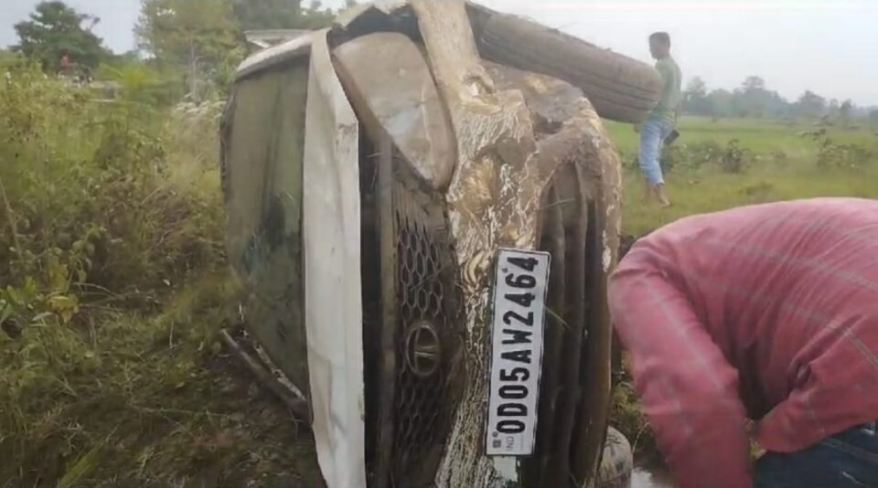 ଆଠ ଫୁଟ ତଳକୁ ଖସିଲା ମାରୁତି କାର, ଅଳ୍ପକେ ବର୍ତିଲେ ଚାରିଜଣ