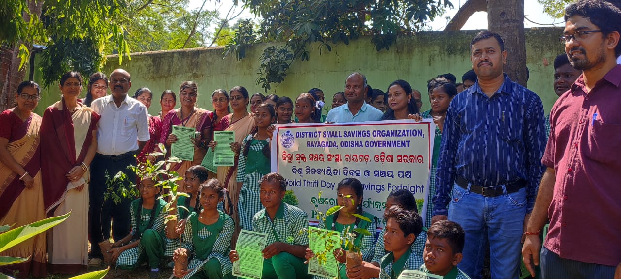 ଅର୍ଥ ଆଗାମୀଦିନରେ ଆସୁଥିବା ଆର୍ଥିକ ସମସ୍ୟା ଓ ବିପଦରୁ ସୁରକ୍ଷା ପ୍ରଦାନ କରିଥାଏ” | କାର୍ଯ୍ୟକ୍ରମରେ ଜିଲ୍ଲା କ୍ରୀଡା ଅଧିକାରୀ ଶ୍ରୀ ଶେଖ ଆଲେନୁର, ଜିଲ୍ଲା ସାମାଜିକ ସୁରକ୍ଷା ଅଧିକାରୀ ଶ୍ରୀ ଶ୍ରୀକାନ୍ତ ପାଣିଗ୍ରାହୀ, ରାୟଗଡା ମୁଖ୍ୟଡାକ କାର୍ଯ୍ୟାଳୟର ପୋଷ୍ଟମାଷ୍ଟର ଶ୍ରୀ ମହାନ୍ତି, ସ୍ଥାନୀୟ ବିଦ୍ୟାଳୟର ମୁଖ୍ୟଶିକ୍ଷିକା ନମିତା ପଧାନ, ବୟୋଜ୍ୟେଷ୍ଠ ଶିକ୍ଷକ ଶ୍ରୀ କେ.ମୁରଲୀ, ଡାକ ଏଜେଣ୍ଟ ଶ୍ରୀ ପଟ୍ଟନାୟକ, ଶ୍ରୀ ବେହେରା ଓ ଶ୍ରୀ ରାଉତ ସମେତ ବିଦ୍ୟାଳୟର ସମସ୍ତ ଶିକ୍ଷିକା ଓ ଛାତ୍ରଛାତ୍ରୀ ବୃନ୍ଦ ଯୋଗଦାନ ଓ ଶ୍ରମଦାନ କରିଥିଲେ | ବରିଷ୍ଠ ଅଧିକାରୀମାନେ ଛାତ୍ରଛାତ୍ରୀମାନଙ୍କୁ ବୃକ୍ଷରୁ ସଂଚୟ ପାଇଁ ପ୍ରେରଣା ନବାକୁ ଉତ୍ସାହିତ କରିଥିଲେ ଓ ସ୍ୱଳ୍ପ ସଂଚୟର ଗୁରୁତ୍ୱ ବୁଝାଇଥିଲେ | ଭାରତ ସରକାରଙ୍କ ଦ୍ୱାରା ଡାକବିଭାଗ ଓ ରାଷ୍ଟ୍ରାୟତ୍ତ ବ୍ୟାଙ୍କମାନଙ୍କରେ ପ୍ରଚଳିତ ବିଭିନ୍ନ ସ୍ୱଳ୍ପ ସଂଚୟ ଯୋଜନାମାନ ଓ ରାଜ୍ୟସରକାରଙ୍କ ସ୍ୱଳ୍ପ ସଂଚୟ ପ୍ରୋତ୍ସାହନ ଯୋଜନା ଯେଉଁଥିରେ ସର୍ବାଧିକ 5ଲକ୍ଷରୁ ସର୍ବନିମ୍ନ 4ହଜାର ପର୍ଯ୍ୟନ୍ତ ପୁରସ୍କାର ରାଶି ପ୍ରତ୍ୟେକ ବର୍ଷ ପ୍ରଦାନ କରାଯାଉଛି, ତାହା ଉପରେ ଆଲୋକପାତ କରାଗଲା | ବାର୍ଷିକ ସଂଚୟ ପକ୍ଷ (31 ଅକ୍ଟୋବର ରୁ 14 ନଭେମ୍ବର) ପାଳନ ଅବସରରେ ଜିଲ୍ଲାସ୍ତରୀୟ ଭାଷଣ ପ୍ରତିଯୋଗିତା, ଆର୍ଥିକ ସାକ୍ଷରତା ଶିବିର ଓ ଭ୍ରାମ୍ୟମାଣ ସଂଚୟ ରଥ ଦ୍ୱାରା ସଚେତନତା କାର୍ଯ୍ୟକ୍ରମ ଧାର୍ଯ୍ୟ କରାଯାଇଛି | ରାଜ୍ୟ ଆର୍ଥିକ ସେବା ଓ ସଂଚୟ ନିର୍ଦେଶାଳୟ ପକ୍ଷରୁ ରାଜ୍ୟବ୍ୟାପୀ ସଂଚୟ ପକ୍ଷ ପାଳନ କରାଯାଉଛି, ଯେଉଁଥିରେ ଜନତା ଆଗଭର ହୋଇ ଭାଗିଦାର ହେଉଛନ୍ତି |