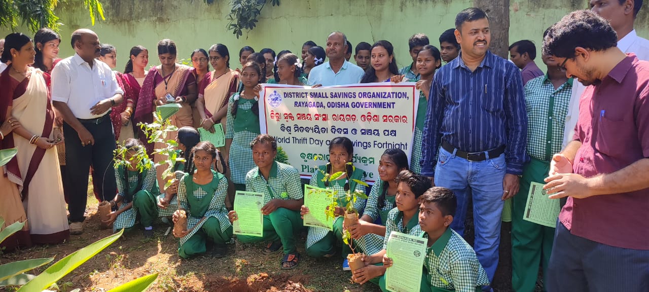 ରାୟଗଡ:-ତା.୦୨/୧୧-ରାୟଗଡ଼ା ଜିଲ୍ଲା ସ୍ୱଳ୍ପ ସଞ୍ଚୟ ସଂସ୍ଥା ତରଫରୁ ବିଶ୍ୱ ମିତଵ୍ୟୟିତା ଦିବସ ଓ ସଞ୍ଚୟ ପକ୍ଷ ପାଳନ ଅବସରରେ ଗୋବିନ୍ଦ ଚନ୍ଦ୍ର ଦେବ ଜିଲ୍ଲା ଉଚ୍ଚ ବିଦ୍ୟାଳୟ ପ୍ରାଙ୍ଗଣରେ ଗତ ଗୁରୁବାର ବୃକ୍ଷରୋପଣ କାର୍ଯ୍ୟକ୍ରମ ଅନୁଷ୍ଠିତ ହୋଇଯାଇଅଛି | ଏଥିରେ