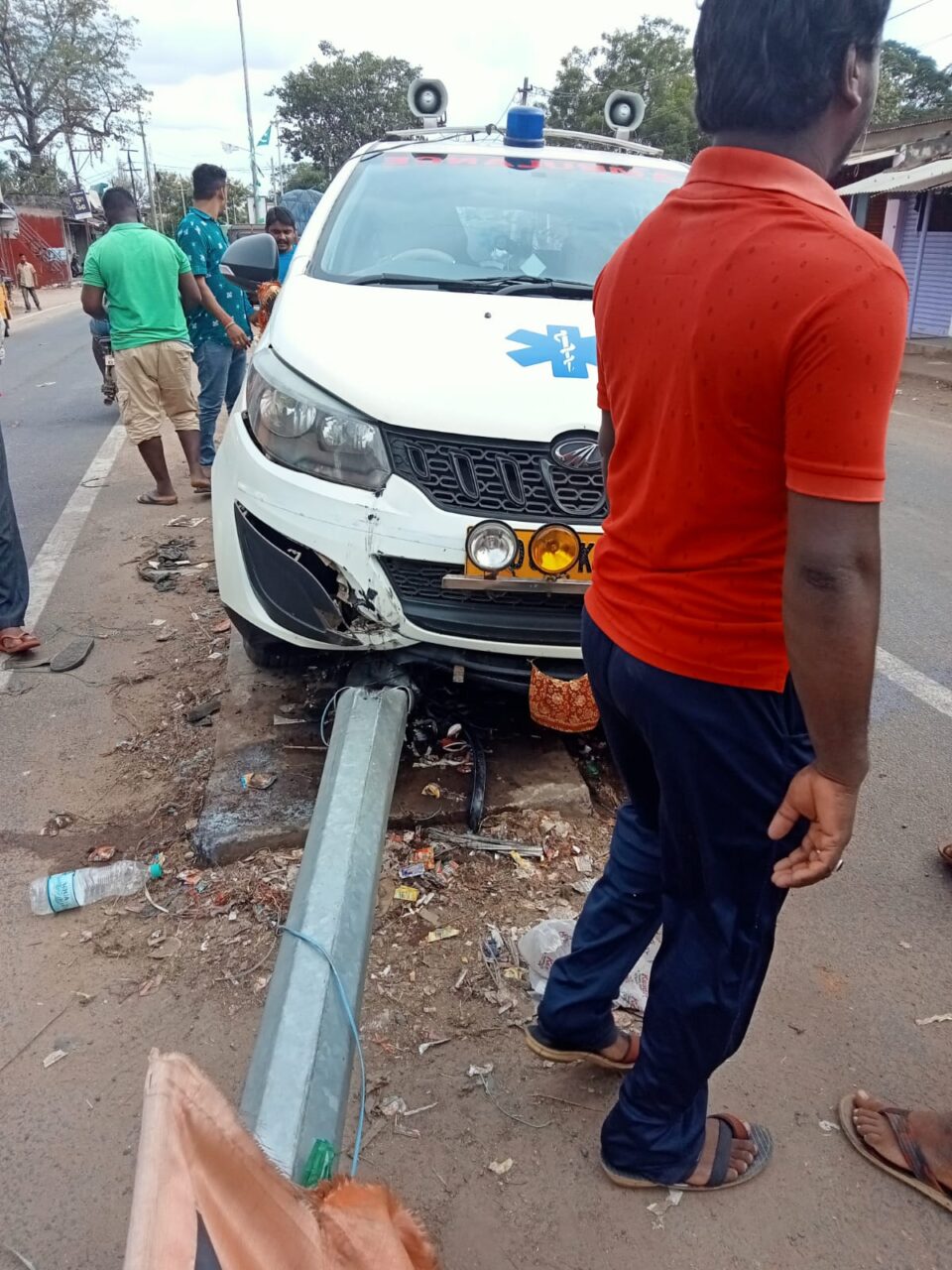 ବିଦ୍ୟୁତ ଖୁଣ୍ଟକୁ ଧକ୍କା ଦେଲା ଏକ ଘରୋଇ ଆମ୍ବୁଲାନ୍ସ , ଷ୍ଟ୍ରିଟ୍ ଲାଇଟ୍ ବିଦ୍ୟୁତ ସେବା ବନ୍ଦ