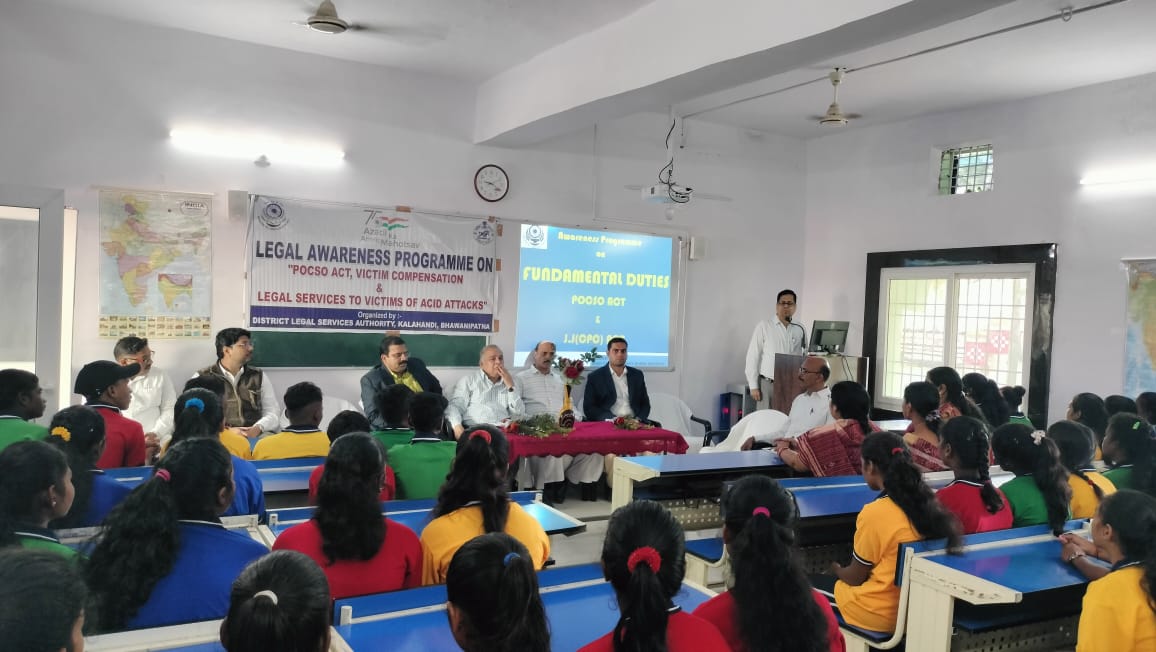 ଭବାନୀପାଟଣା:୧୮/୧୧ – (ମନିସ):- ରାଜ୍ଯ ଆଇନ୍ ସେବା ପ୍ରାଧିକରଣର ନିର୍ଦ୍ଦେଶ କ୍ରମେ ଭବାନୀପାଟଣା ସଦର ବ୍ଳକ ସ୍ଥିତ ଭଟାଙ୍ଗପଦର ସରକାରୀ ଉଚ୍ଚ ବିଦ୍ୟାଳୟରେ କଳାହାଣ୍ଡି ଜିଲ୍ଲା ଆଇନ ସେବା ପ୍ରାଧିକରଣ ପକ୍ଷରୁ ସଚେତନତା କାର୍ଯ୍ୟକ୍ରମ ଅନୁଷ୍ଠିତ ହୋଇଯାଇଛି। ମୌଳିକ କର୍ତ୍ତବ୍ୟ,ଜେଜେ(ସିପିସି) ଆଇନ ଓ ଯୌନ ଅପରାଧରୁ ଶିଶୁଙ୍କ ସୁରକ୍ଷା ଆଇନ ସମ୍ପର୍କରେ ସଚେତନ