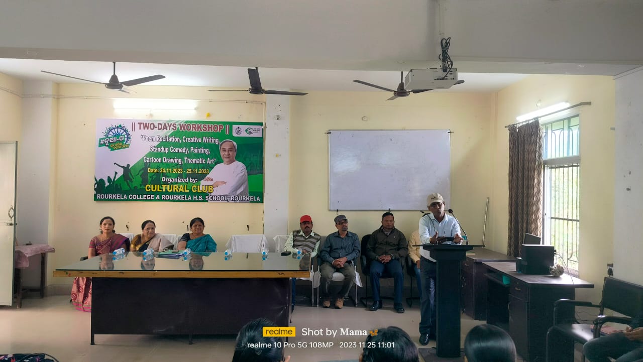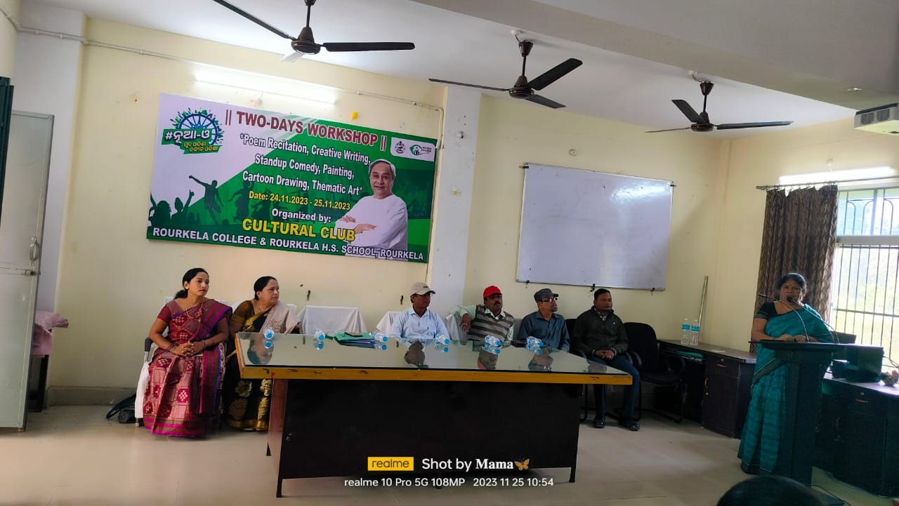 ତପସ୍ଵିନୀ ମିଶ୍ରଙ୍କ ମାର୍ଗଦର୍ଶନ ଏବଂ ସାଂସ୍କୃତିକ ପରିଷଦର ନୋଡାଲ ଅଧିକାରୀ ଅଧ୍ୟାପିକା ରଶ୍ମିପ୍ରଭା ମଥାନଙ୍କ ତତ୍ତ୍ଵାବଧାନରେ ଦ୍ବି-ଦିବସୀୟ କର୍ମଶାଳା ଅନୁଷ୍ଠିତ ହୋଇଯାଇଛି। କର୍ମଶାଳାର ପ୍ରଥମ ଦିବସରେ କବିତା