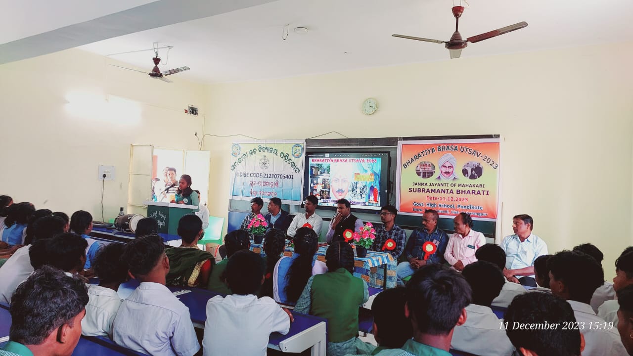ଦେଇଥିଲେ। ବିଦ୍ୟାଳୟ ର ଛାତ୍ର ଛାତ୍ରୀ ସ୍ବାଗତ ଗୀତ ପରିବେଷଣ କରିଥିଲେ ଉକ୍ତ ବୈଠକରେ ସୁବ୍ରମନ୍ୟମ ଭାରତୀଙ୍କ ଜୀବନୀ ଉପରେ ଚିତ୍ରାଙ୍କନ, ସାଧାରଣ ଜ୍ଞାନ ଏବଂ ବକୃତା ପ୍ରତିଯୋଗିତା ହୋଇଥିଲା | ଅତିରିକ୍ତ ଜିଲ୍ଲା ଶିକ୍ଷା ଅଧିକାରୀଙ୍କ ହୃଦୟସ୍ପର୍ଶୀ ଏବଂ ପ୍ରେରଣା ମୂଳକ ଭାଷଣ ଦେଇଥିଲେ ମୁଖ୍ୟ ବକ୍ତା ମୋ ସ୍କୁଲ ସଭାପତି ସଦାଶିବ ହରିଜନ, ଏସସେମସି ସଭାପତି ସନ୍ୟାସୀ ଜାନି ଏବଂ ବିଦ୍ୟାଳୟର ପ୍ରଧାନ ଶିକ୍ଷକ ଶିବଶଙ୍କର ସାମଲ ଭାଷାର ମହତ ବୁଝାଇଥିଲେ | ପରିଶେଷରେ “ମୋ ଦସ୍ତଖତ ମୋ ଭାଷା ” କାର୍ଯ୍ୟକ୍ରମ ଆୟୋଜନ କରାଯାଇଥିଲା । ଏଥିରେ ସମସ୍ତେ ନିଜ ମାତୃଭାଷା ରେ ଦସ୍ତଖତ କରିଥିଲେ । ଜମେଶ୍ଵର ନାଗ ମଞ୍ଚ ପରିଚାଳନା କରିଥିଲେ ଏବଂ ହୃଷିକେଶ ବିଷୋୟୀ, ସଞିବ ବଡଗୁଛିଆ , ନାରାୟଣ ଭୋଇ , ଉତ୍କଳ କେଶରୀ ଜେନା, କୁନିଲତା ନାୟକ, ବବିତା ଜାନୀ, ଗୋବିନ୍ଦ ଭତ୍ରା ପରିଶେଷରେ ବିଦ୍ୟାଳୟ ପ୍ରଧାନ ଶିକ୍ଷକ ଧନ୍ୟବାଦ ଦେଇଥିଲେ।
