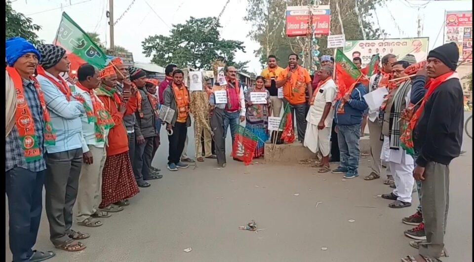 ରାହୁଳ ଓ ନବୀନଙ୍କ କୁଶ ପୁତ୍ତଳିକା ଦାହ କଲା ବସ୍ତା ବିଜେପି