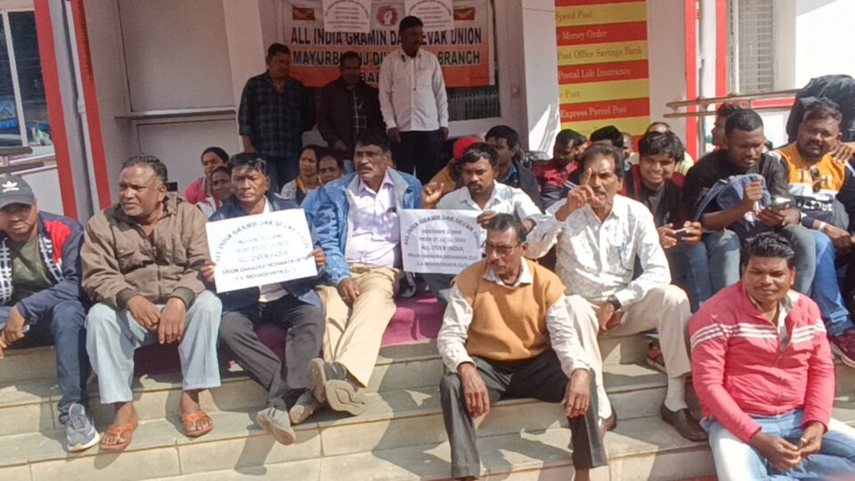 ଅଲ୍ ଇଣ୍ଡିଆ ଗ୍ରାମୀଣ ଡାକ ସେବକ ସଂଘର ଆହ୍ବାନ କ୍ରମେ ରାଇରଙ୍ଗପୁର ଡାକମଣ୍ଡଳ ଅଧୀନସ୍ଥ ୨୬୮ ଟି ଗ୍ରାମୀଣ ଡାକଘରର କାର୍ଯ୍ୟରତ ଡାକ ସେବକମାନେ ୫ ଦଫା ଦାବି ନେଇ ରାଇରଙ୍ଗପୁର ଡାକମଣ୍ଡର ଅଧିକ୍ଷକଙ୍କ କାର୍ଯ୍ୟାଳୟ ସମ୍ମୁଖରେ ଗତ ୧୨ ତାରିଖରୁ ଅନିର୍ଦ୍ଦିଷ୍ଟ କାଳ ପର୍ଯ୍ୟନ୍ତ ଧାରଣା ଓ ପ୍ରତିବାଦ ତଥା କାର୍ଯ୍ୟ ଵନ୍ଦ କରିଛନ୍ତି ।ଫଳରେ ରାଇରଙ୍ଗପୁର ସମେତ ସମଗ୍ର ଭାରତରେ ଡାକ ବିଭାଗ ସମ୍ପର୍କିତ ସମସ୍ତ ସେବା ଓ କାର୍ଯ୍ୟରେ ବ୍ୟାଘାତ ସ୍ତୃଷ୍ଟି ହୋଇଛି ।ସଂଘର ଦାବି ଗୁଡ଼ିକ : ଗ୍ରାମୀଣ ଡାକ ସେବକଙ୍କ ଦୈନିକ କାର୍ଯ୍ୟ ନିର୍ଘଣ୍ଟ ୪ ଘଣ୍ଟାରୁ ୮ ଘଣ୍ଟା ଡ୍ଯୁଟି, ପ୍ରତି ୧୨ ବର୍ଷ ରେ ଆର୍ଥିକ ପଦୋନ୍ନତି ଦେଵା ସୁପାରିଶ ଶିଘ୍ର ଲାଗୁ କରାଯାଉ,, ସମସ୍ତ ଡାକ ସେବକଙ୍କୁ ୫ ଲକ୍ଷ ମାଗଣା ସ୍ବାସ୍ଥ୍ୟ ବୀମା, ପେନସନ,ଗ୍ରାଚ୍ଯୁଟି ପ୍ରଦାନ,ସେଭେରାନ୍ସ ଆଲଆଉନ୍ସ ପ୍ରଦାନ, ଟାର୍ଗେଟ ନାମରେ ଅଧିକାରୀମାନଙ୍କ ଜୁଲମ ବନ୍ଦ କରାଯାଉ ଇତ୍ୟାଦି ଦାବି ରଖି ଧର୍ମଘଟ ଆରମ୍ଭ କରିଛନ୍ତି । କେନ୍ଦ୍ର ସରକାର ସେମାନଙ୍କ ଦାବିପ୍ରତି ତଥା ସେମାନଙ୍କ ଧାର୍ଯ୍ୟ ଦାବି ପ୍ରତି ଅଣ ଦେଖା କରୁଥିବାରୁ ସେମାନେ ଧାରଣାରେ ବସିଛନ୍ତି ।ଆଗାମୀ ଦିନରେ କେନ୍ଦ୍ର ସରକାର ଯଦି ସେମାନଙ୍କ ନ୍ଯାୟଚିତ ଦାବି ପ୍ରତି ସମାଧାନ ନ କରନ୍ତି ତାହାହେଲେ ଆଗାମୀ ଦିନରେ ଆନ୍ଦୋଳନକୁ ଜୋରଦାର କରାଯିବ ବୋଲି ଗଣମାଧ୍ୟମ ସମ୍ମୁଖରେ ନେତୃବୃନ୍ଦ କହିଥିଲେ ।ଏହି ଆନ୍ଦୋଳନରେ ଏନଏଫପିଇ ସଂପାଦକ ବେଣୁଧର ମହାନ୍ତ,ମଣ୍ଡଳ ସଂପାଦକ ଅର୍ଜୁନ ମହାନ୍ତ,ରସାନନ୍ଦ ବେହେରା,,ରବି ବଲ୍ଲଭ ନାଏକ,,ଲିନା ପୂର୍ତ୍ତି,କାପୁରଂକ ମାରାଣ୍ଡି,ଚିତା ହାଁସଦା, ସ୍ବରାଜ ମହାନ୍ତ,ସୁଧନ୍ଯା ପରମାଣିକ, ଲୋହିତ ମହାନ୍ତ, ଅନ୍ତର୍ଯ୍ୟାମୀ ଵେଶ୍ରା,ଡମାନ ମୁର୍ମୁ,ସପନ ମହାନ୍ତ,କାହ୍ନୁ ମାଝୀ,ଯଶୋଦା ମହାନ୍ତ,ଶଶ୍ମିତା ନାଏକ,ଦୁଖୁରାମ ମୁର୍ମୁ, ଧରଣୀଧର ମହାନ୍ତ, ସୁନନ୍ଦା ସେଠୀ ଏବଂ ଅନ୍ୟମାନେ ସାମିଲ ହୋଇଥିଲେ ।