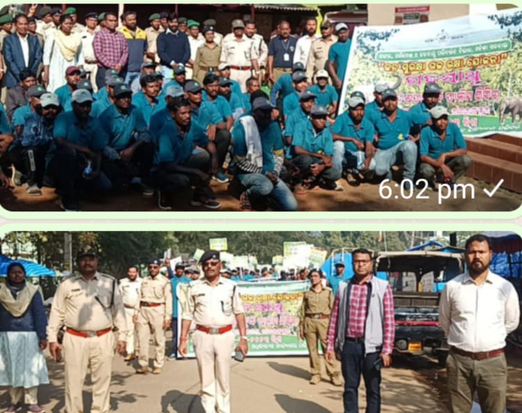 ମୟୂରଭଞ୍ଜ -୨୪/୧୨ ( ମସିହା) ଓଡ଼ିଶା ସରକାରଙ୍କର ଜଙ୍ଗଲ ,ପରିବେଶ ଜଳବାୟୁ ପରିବର୍ତ୍ତନ ବିଭାଗ ନିର୍ଦ୍ଦେଶକ୍ରମେ ରାଇରଙ୍ଗପୁର ବନଖଣ୍ଡ ଆନୁକୁଲ୍ୟରେ ‘ ଜନ ସୁରକ୍ଷା,ଗଜରକ୍ଷା ଯୋଜନାରେ ‘ ଏକ ଦିବସୀୟ ରାଇରଙ୍ଗପୁର ବନଖଣ୍ଡ ସ୍ତରୀୟ ‘ଗଜସାଥୀ ଦକ୍ଷତା ତାଲିମ ଶିବିର’ ଡିଏଫଓ ଶ୍ରୀ ଶିବ ପ୍ରସାଦ ରଥଙ୍କ ପ୍ରତ୍ୟକ୍ଷ ତତ୍ତ୍ଵାବଧାନରେ ରବିବାର ଦିନ ଅନୁଷ୍ଠିତ ହୋଇଯାଇଛି ।ଏହି କାର୍ଯ୍ୟକ୍ରମରେ ସହକାରୀ ବନ ସଂରକ୍ଷକ ପ୍ରଭାକର ମଲ୍ଲିକ, ରଂଜନ ବେହେରା, ସୁଶାନ୍ତ କୁମାର ପାଟବନ୍ଧା,ମାଷ୍ଟର ଟ୍ରେନର ସୁବ୍ରତ ବିଶ୍ବାଳ, ପରିବେଶବିତ୍ ଲଳିତ ମହାନ୍ତ, ରାଇରଙ୍ଗପୁର ,ବାଦାମପାହାଡ , ବିଶୋଇ,ମଣଦା ଏବଂ ଵହଳଦା ୫ ଜ୍ୟୋତି ରଂଜନ ସେନାପତି, ରମାକାନ୍ତ ମାଝୀ,, କ୍ଷୀରୋଦ ଚନ୍ଦ୍ର ସିଂ,,ଧରିତ୍ରୀ ମୁର୍ମୁ,, ସୁମତି ପାତ୍ର,ବନପାଳ,ଵନରକ୍ଷୀ ଏବଂ ଶତାଧିକ ଵନସୁରକ୍ଷା ସମିତି ସଦସ୍ୟ/,ସଦସ୍ଯା,ଗଜସାଥୀ ପ୍ରମୁଖ ସାମିଲ ହୋଇଥିଲେ ।ପ୍ରାରମ୍ଭରେ ଵନ ବିଭାଗ ଅଧିକାରୀ ଏବଂ ଗଜ ସାଥୀ,ବନ ସୁରକ୍ଷା ସମିତି ସଦସ୍ୟମାନେ ପ୍ଳାକାର୍ଡ ସହ ଗଜସୁରକ୍ଷା, ଜଙ୍ଗଲ ସୁରକ୍ଷା, ପରିବେଶ ସୁରକ୍ଷା , ଜୀବଜନ୍ତୁ ସୁରକ୍ଷା ସଚେତନତା ବାର୍ତ୍ତା ନେଇ ରାଇରଙ୍ଗପୁର ସହର ପରିକ୍ରମା କରିଥିଲେ ପରେ ରାଇରଙ୍ଗପୁର ବନାଞ୍ଚଳ କାର୍ଯ୍ୟାଳୟ ପରିସରରେ ଏକ ସଚେତନତା ସଭା ଅନୁଷ୍ଠିତ ହୋଇଥିଲା । ଏଥିରେ ହାତୀ ଓ ଜୀବଜନ୍ତୁ ସୁରକ୍ଷା, ନିଆଁ ଦାଉରୁ ଜଙ୍ଗଲ ରକ୍ଷା,ବନ ନିକଟସ୍ଥ ଗ୍ରାମବାସୀଙ୍କୁ ସଚେତନ କରାଇବା ବାର୍ତ୍ତା ଦେଇଥିଲେ ।ପରେ ମାଷ୍ଟର ଟ୍ରେନର ସୁବ୍ରତ ବିଶ୍ବାଳ ସମସ୍ତଙ୍କୁ ପ୍ରୋଜେକ୍ଟର ମାଧ୍ୟମରେ ଗଜସାଥୀମାନଙ୍କୁ ଜାତୀୟ ଐତିହ୍ୟ ହାତୀର ଜୀବନ ଶୈଳୀ,ହାତୀର ବ୍ୟବହାର ,ଚାଲି ଚଳନ,ଖାଦ୍ୟପେୟ,ଚଲାପଥ, ସୁରକ୍ଷା ଉପରେ ଆଲୋକପାତ କରିବା ସହ ହାତୀ ପାଖରୁ ମଣିଷ କିଭଳି ନିରାପଦରେ ରହି ପାରିବ ଓ ମଣିଷର ହାତୀ ଉପଦ୍ରଵରେ କ୍ଷୟକ୍ଷତିର ଭରଣା ଓ ଅନୁକମ୍ପା ରାଶିର ସହାୟତା ସଂପର୍କରେ ସୂଚନା ଦେଇଥିଲେ ।