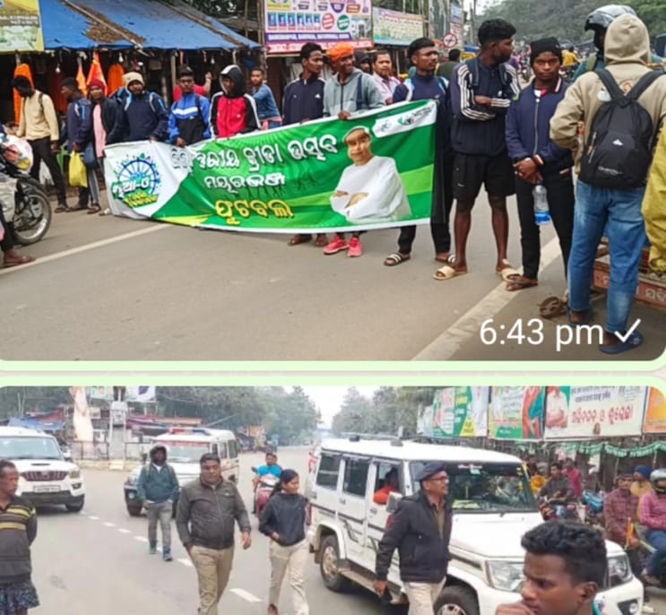 ରାଇରଙ୍ଗପୁରରେ ସରକାରଙ୍କ ଜିଲ୍ଲା ସ୍ତରୀୟ ଫୁଟବଲ ଟୁର୍ଣ୍ଣାମେଣ୍ଟରେ ବ୍ୟାପକ ଅବ୍ୟବସ୍ଥା ନେଇ ଖେଳାଳି ମାନଙ୍କ ୧ ଘଣ୍ଟା ଧରି ୨୨୦ ନମ୍ବର ଜାତୀୟ ରାଜପଥ ରାସ୍ତା ଅବରୋଧ