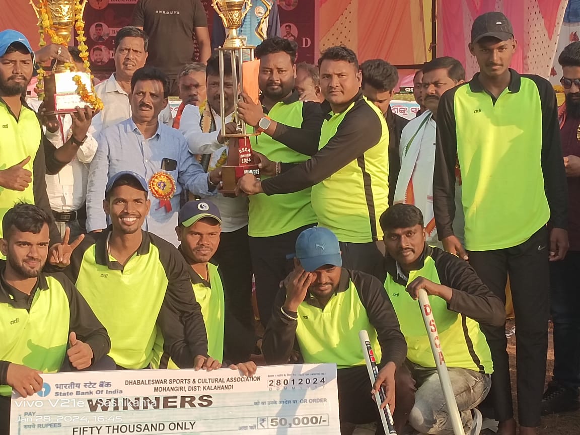 ମ.ରାମପୁର,୨୮/୧(ମସୀହା): ଧବଳେଶ୍ୱର କ୍ରୀଡା ଓ ସାଂସ୍କୃତିକ ଅନୁଷ୍ଠାନ , ମୋହନଗିରି ଆୟୋଜନରେ ୧୯ ତମ ରାଜ୍ୟ ସ୍ତରୀୟ କ୍ରିକେଟ ଟୁର୍ଣ୍ଣାମେଣ୍ଟରେ ର ଆଜି ଫାଇନାଲ ମ୍ୟାଚ୍ ନୟାଗଡ଼ ଓ ରାଉଲକେଲା ମଧ୍ୟରେ ଖେଳା ଯାଇଥିଲା l ଟସ ଜିଣି ରାଉରକେଲା ଦଳ ପ୍ରଥମେ ଫିଲଡ଼ିଂ ନିଷ୍ପତି ନେଇଥିଲା l ନୟାଗଡ଼ ଦଳ ନିର୍ଦ୍ଧାରିତ ୧୬ ଓଭର ରେ ୭ ୱିକେଟ ହରାଇ ୧୭୨ ରନ କରିଥିଲେ l ଏହାର ଜବାବରେ ରାଉରକେଲା ଦଳ ବ୍ୟାଟିଂ କରି ୧୧.୪ ଓଭର ରେ ୬ ୱିକେଟ ହରାଇ ୧୭୩ ରନ କରି ବିଜୟୀ ହୋଇ ଧବଳେଶ୍ୱର କାପ୍ ହାସଲ କରି ଚମ୍ପିୟାନ