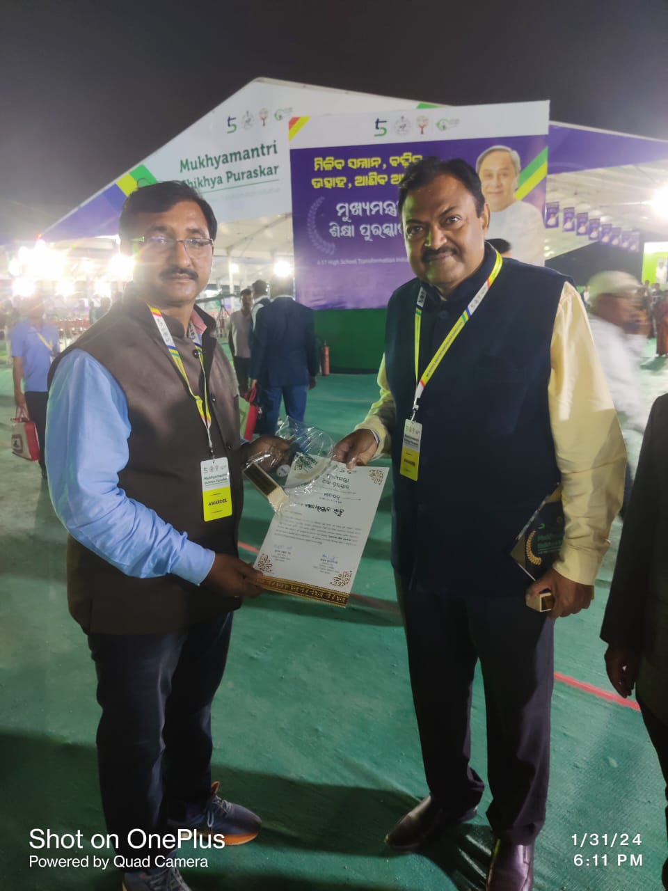 ପ୍ରଧାନ ଶିକ୍ଷକ ମନୋରଞ୍ଜନ ସାହୁ ଙ୍କୁ ଶ୍ରେଷ୍ଠ ପ୍ରଧାନ ଶିକ୍ଷକ ପୁରସ୍କାର ରେ ପୁରସ୍କୃତ