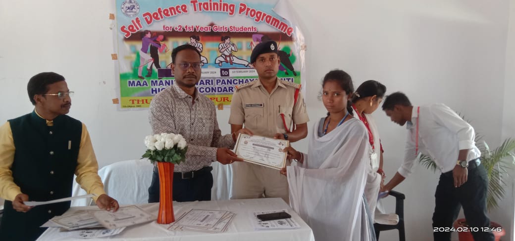 ଥୁଆମୁଳ ରାମପୁର ସ୍ଥିତ ସ୍ଥାନୀୟ ମା ମାଣିକେଶ୍ୱରୀ ପଞ୍ଚାୟତ ସମିତି ଉଚ୍ଚ ମାଧ୍ୟମିକ ବିଦ୍ୟାଳୟ ଠାରେ ଆୟୋଜିତ ଛାତ୍ରୀ ମାନଙ୍କ ଆତ୍ମ ସୁରକ୍ଷା ତାଲିମ କାର୍ଯ୍ୟକ୍ରମ ଉଦଯାପିତ ହୋଇଯାଇଛି।ଗତ ଫେବୃଆରୀ