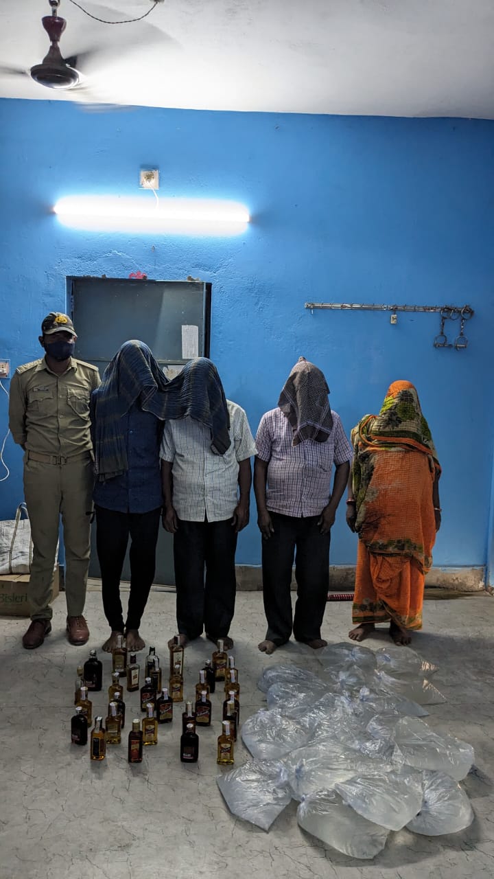 ଅବକାରୀ ଚଢାଉ: ୧୦୫ ଲିଟର ମଦ ଜବତ , ୪ ଗିରଫ୍