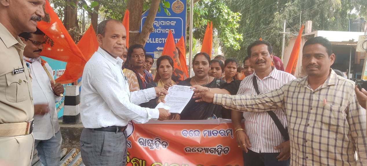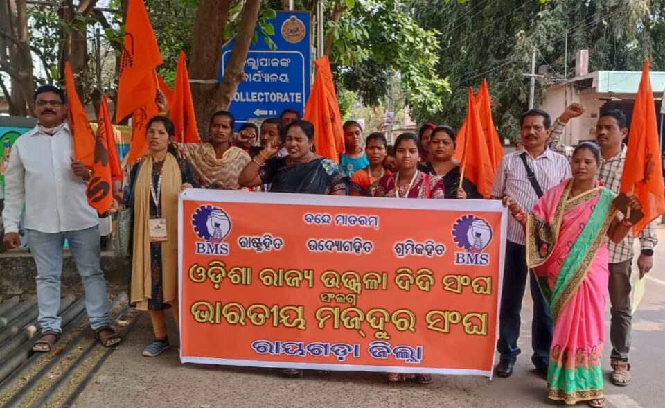 ମାନ୍ୟବର ପ୍ରଧାନମନ୍ତ୍ରୀଙ୍କ ଉଦ୍ଦେଶ୍ୟରେ ୩ ଦଫା ଦାବି ପତ୍ର ରାୟଗଡ଼ା ଅତିରିକ୍ତ ଜିଲ୍ଲାପାଳ ଭାସ୍କର ଚନ୍ଦ୍ର ରଇତଙ୍କୁ ପ୍ରଦାନ କରିଥିଲେ । ଦାବି ମଧ୍ୟରେ ଉଜ୍ଜ୍ୱଳା ଦିଦି ମାନଙ୍କୁ କାର୍ଯ୍ୟଦେବା ସମୟରେ ଯେଉଁ ସବୁ ପ୍ରତିଶୃତି ଦିଆଯାଇଥିଲା ତାହାକୁ କାର୍ଯ୍ୟକାରୀ କରାଯିବା , ସମସ୍ତ ଉଜ୍ଜ୍ୱଳା ଦିଦି ମାନଙ୍କ ପାଇଁ ସାମାଜିକ ସୁରକ୍ଷା ଯୋଗାଇ ଦିଆଯିବ , ଉଜ୍ଜ୍ୱଳା ଦିଦି ମାନଙ୍କୁ କର୍ମ ନିଯୁକ୍ତି ଯୋଜନାରେ ଉଜ୍ଜ୍ୱଳା ଦିଦି ମାନଙ୍କୁ କାମ ଯୋଗାଇ ଦେବା ସହ ପାରିଶ୍ରମିକ ଯୋଗାଇ ଦିଆଯିବା ଅନ୍ତର୍ଭୁକ୍ତ କରିବା । ରାୟଗଡ଼ା ଜିଲ୍ଲା ସଂଯୋଜିକା ଶ୍ରୀମତୀ ଭବାନୀ ନିମାଲଙ୍କ ସଂଯୋଜନାରେ ଆୟୋଜିକା କାର୍ଯ୍ୟକ୍ରମରେ ମୂଖ୍ୟ ଅତିଥି ଭାବେ ଭାରତୀୟ ମଜଦୁର ସଂଘ ର ରାଜ୍ୟ ଉପସଭାପତି ଶ୍ରୀ ଯୋଗେଶ୍ଵର ଦାସ , ମୂଖ୍ୟ ବକ୍ତା ଭାବେ ଉଜ୍ଜ୍ୱଳା ଦିଦି ସଂଘ ର ରାଜ୍ୟ ସଭାନେତ୍ରୀ ଶ୍ରୀମତୀ ବୀଣାପାଣି ବେହେରା , ସମ୍ମାନୀୟ ଅତିଥି ଭାବେ ଭାରତୀୟ ମଜଦୁର ସଂଘ ର ଜିଲ୍ଲା ସଭାପତି ମହନ ରାଓ ମାଝୀ , ଜିଲ୍ଲା ସମ୍ପାଦକ ଗଣେଶ କୁମାର ସାହୁ , ସହ ସମ୍ପାଦିକା ନେହା ସିଂ , ନଗର ସଭାପତି ଶିବ ପ୍ରସାଦ ସିଂ ଯୋଗ ଦେଇଥିଲେ । କାର୍ଯ୍ୟକ୍ରମକୁ ଜିଲ୍ଲା ସଂଘର କଟି କାଡ୍ରାକା , ଯମୁନା କାଡ୍ରାକା , ଦୟାବତି ଦଳପତି , ଅମ୍ବିକା ଶବର ସହ ଜିଲ୍ଲା ର କାର୍ଯ୍ୟକାରୀ ସଦସ୍ୟ ମାନେ ପରିଚାଳନା ରେ ସହଯୋଗ କରିଥିଲେ ।