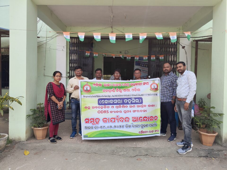 ଓଡିଶା ଜିଲ୍ଲା ରାଜସ୍ୱ ସେବା ପୁନର୍ଗଠନ ଦାବିରେ ଅନିର୍ଦ୍ଦିଷ୍ଟ କାଳ ଆନ୍ଦୋଳନରେ କୋକସରା ରାଜସ୍ୱ କର୍ମଚାରୀ