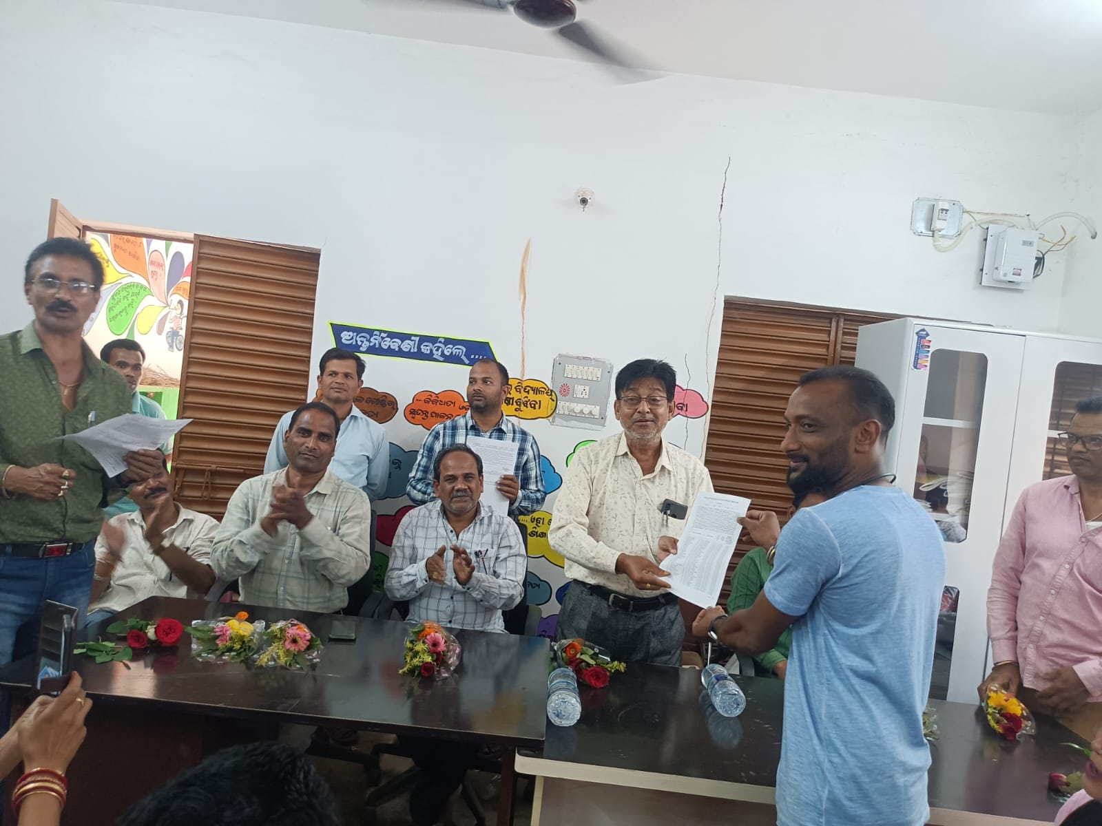 ଡାବୁଗାଁ, ୧୨/୩ (ମ.ନି.ସ.) – ନବରଙ୍ଗପୁର ଜିଲା ଡାବୁଗାଁ ବ୍ଲକ ଅଧୀନରେ କାର୍ଯ୍ୟରତ ଗଣଶିକ୍ଷକ ମାନଙ୍କୁ ନିୟମିତ ଶିକ୍ଷକ ହେବାର ଆଦେଶ ପତ୍ର ବ୍ଲକ ଶିକ୍ଷା ଅଧିକାରୀ ଶିବଶଙ୍କର ମଣ୍ଡଳ ମଙ୍ଗଳବାର ପ୍ରଦାନ କରାଛନ୍ତି |