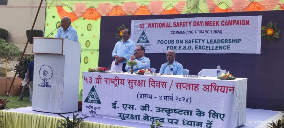 ଜେକେ କାଗଜ କଳ ପରିସରରେ ୫୩ତମ ଜାତୀୟ ସୁରକ୍ଷା ସପ୍ତାହ ପାଳିତ ହୋଇଯାଇଛି ଯାହା କି ଗତ ତା ୦୪.୦୩.୨୦୨୪ ରିଖ ରେ ଉଦ୍ଘାଟିତ ହୋଇ ତା ୧୨.୦୩.୨୦୨୪ ରିଖରେ ସମାପନ ହୋଇଛି । ଉଦ୍ଘାଟନି ସମାରୋହରେ କାରଖାନା ଓ ବାଷ୍ପୀତ୍ର ନିର୍ଦ୍ଦେଶାଳୟର ରାୟଗଡ଼ା ବିଭାଗର ଉପ ନିର୍ଦ୍ଦେଶକ ଶ୍ରୀ ଚିତ୍ତରଞ୍ଜନ ବେଉରା ଓ ଜେକେ ପେପର ମୀଲର ବରିଷ୍ଠ ମହାପ୍ରବନ୍ଧକ ଶ୍ରୀ ଆର. କେ. ଏମ. ରଏ ସୁରକ୍ଷା ପତାକା ଉତ୍ତୋଳନ କରିଥିଲେ। ଏହି ସୁରକ୍ଷା ସପ୍ତାହ ପାଳନ ଅବସରରେ ସୁରକ୍ଷା ସମ୍ବନ୍ଧୀୟ ବିଭିନ୍ନ ପ୍ରକାରର ପ୍ରତିଯୋଗିତା ଆୟୋଜନ କରାଯାଇଥିଲା ।ଏଥିରେ କମ୍ପାନୀ କର୍ମଚାରୀ ଓ ଆଖପାଖର ବିଦ୍ୟାଳୟର ଛାତ୍ରଛାତ୍ରୀମାନେ ଅଂଶଗ୍ରହଣ କରିଥିଲେ। ଏଥିସହିତ କମ୍ପାନୀ କର୍ମଚାରୀ ଓ କଲୋନୀର ମହିଳାମାନଙ୍କୁ ସୁରକ୍ଷା ସମ୍ଭନ୍ଧୀୟ ସଚେତନତା ଓ ତାଲିମ ପ୍ରଦାନ କରାଯାଇଥିଲା ।