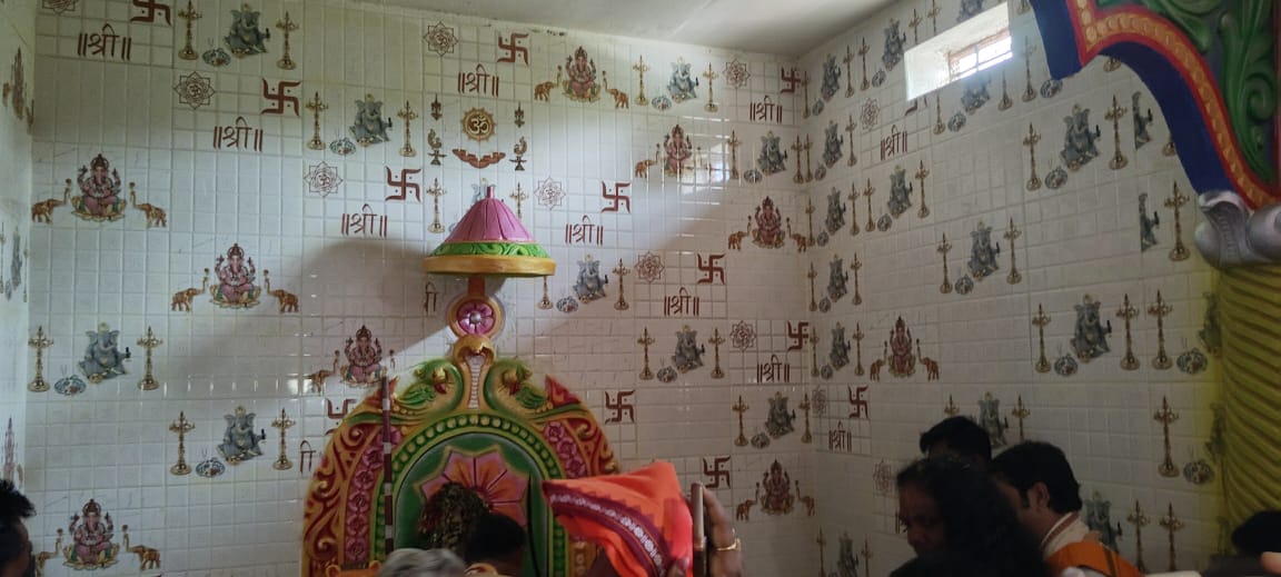 ସ୍ଥାପନା କରାଯାଇଥିଲା। ଏହି ଅବସରରେ ଗ୍ରାମର ସମସ୍ତ ଶକ୍ତିପୀଠ ମାନଙ୍କରେ ମଧ୍ୟ ଆରାଧନା ପୂର୍ବକ ପୂଜା ସମ୍ପନ୍ନ ହୋଇଥିଲା। ଶୁକ୍ରବାର ଦେବୀଙ୍କ ମୂଳପୀଠ ବଲାଙ୍ଗୀର ଜିଲ୍ଲା ଜରାସିଂହାରୁ ଦେବୀଙ୍କ ପ୍ରତୀକ ସ୍ଵରୂପ ପାଟଖଣ୍ଡା ସହ ଜରାସିଂହା ଜମିଦାର ଦୁର୍ଗାପ୍ରସାଦ ସିଂହଦେଓ, ମୁଖ୍ୟ ଦେହୁରୀ ସନ୍ତୋଷ ଥନାପତି, ଉଜ୍ଜ୍ବଳ ଝାଙ୍କର, ବୁଡୁ ପଥ୍ରିମାଳିଙ୍କ ସମେତ ଦେହୁରୀମାନେ ଗାଁରେ ପହଞ୍ଚିଥିଲେ। ଏହି ସମୟରେ ଗ୍ରାମବାସୀଙ୍କ ସମେତ ଶ୍ରଦ୍ଧାଳୁ ଓ ଭକ୍ତମାନେ ପ୍ରବଳ ମାତ୍ରାରେ ଏକତ୍ରିତ ହୋଇଥିଲେ। ହୁଳହୁଳି, ଘଣ୍ଟ, ଶଙ୍ଖ, ଢୋଲ, ନିଶାନ, ମୁହୁରୀର ତାଳରେ ଦେବୀଙ୍କ ଖଣ୍ଡାକୁ ମନ୍ଦିରକୁ ନେଇ ସ୍ଥାପନା କରାଯାଇଥିଲା। ଏଥିରେ ହରଦେବ ପଟ୍ଟନାୟକ ସପତ୍ନୀକ କର୍ତ୍ତା ଦାୟିତ୍ଵ ନିର୍ବାହ କରିଥିଲେ। ଦେବୀଙ୍କ ପୂଜକ ରାମଚନ୍ଦ୍ର ପଟ୍ଟନାୟକ ପୂଜା ଦାୟିତ୍ଵ ତୁଲାଇଥିଲେ। ଗ୍ରାମର ସମସ୍ତ ବାସିନ୍ଦା ପୂଜା ପରିଚାଳନାରେ ସହଯୋଗ କରିଥିଲେ।