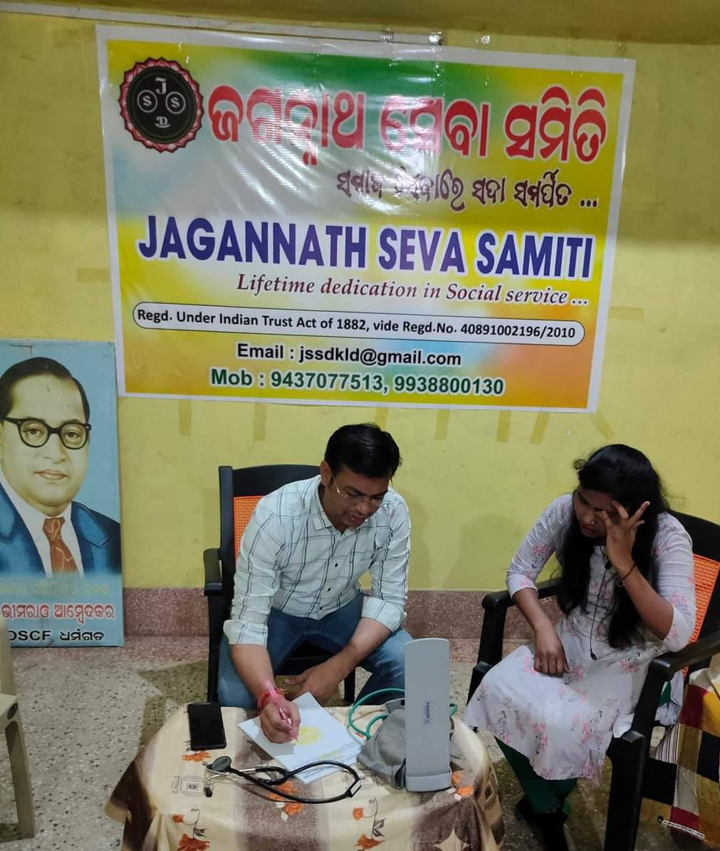 ଜଗନ୍ନାଥ ସେବା ସମିତି ପକ୍ଷରୁ ମେଡିସିନ୍ ବିଶେଷଜ୍ଞ ଡାକ୍ତର ଙ୍କ ଦ୍ବାରା ମାଗଣା ସ୍ବାସ୍ଥ୍ୟ ଚିକିତ୍ସା ଓ ପରାମର୍ଶ ଶିବିର
