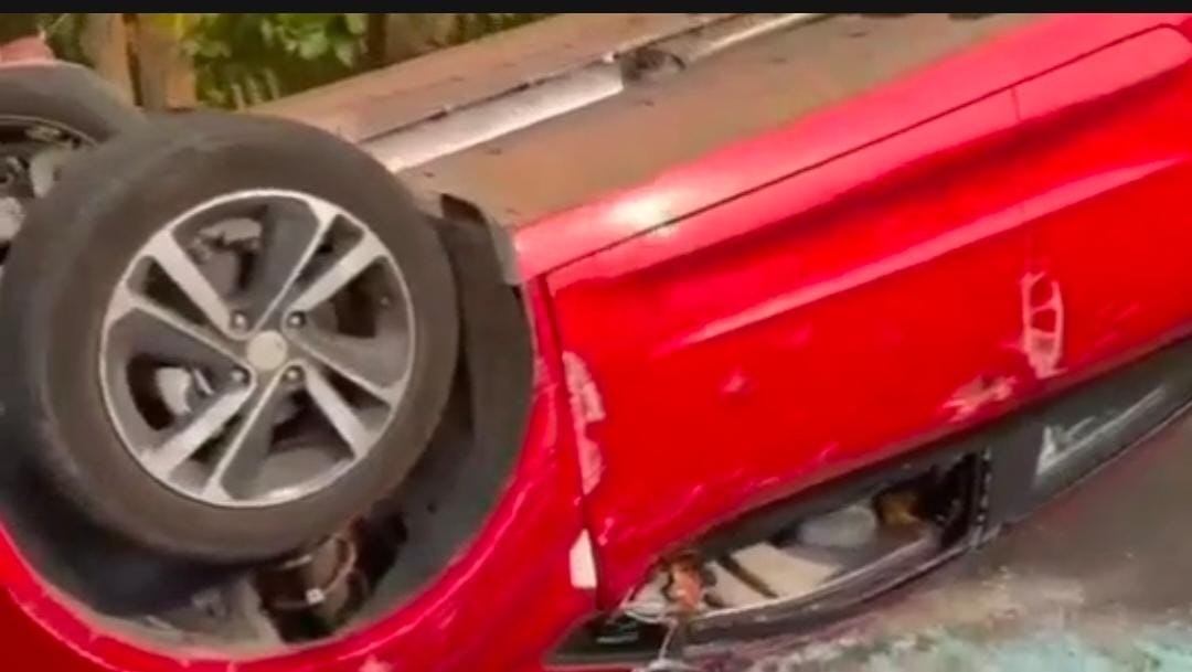 ଭାରସାମ୍ୟ ହରାଇ ରାସ୍ତା ଉପରକୁ ଓଲଟିଲା କାର, ଅଳ୍ପକେ ବର୍ତ୍ତିଲେ ଚାଳକ