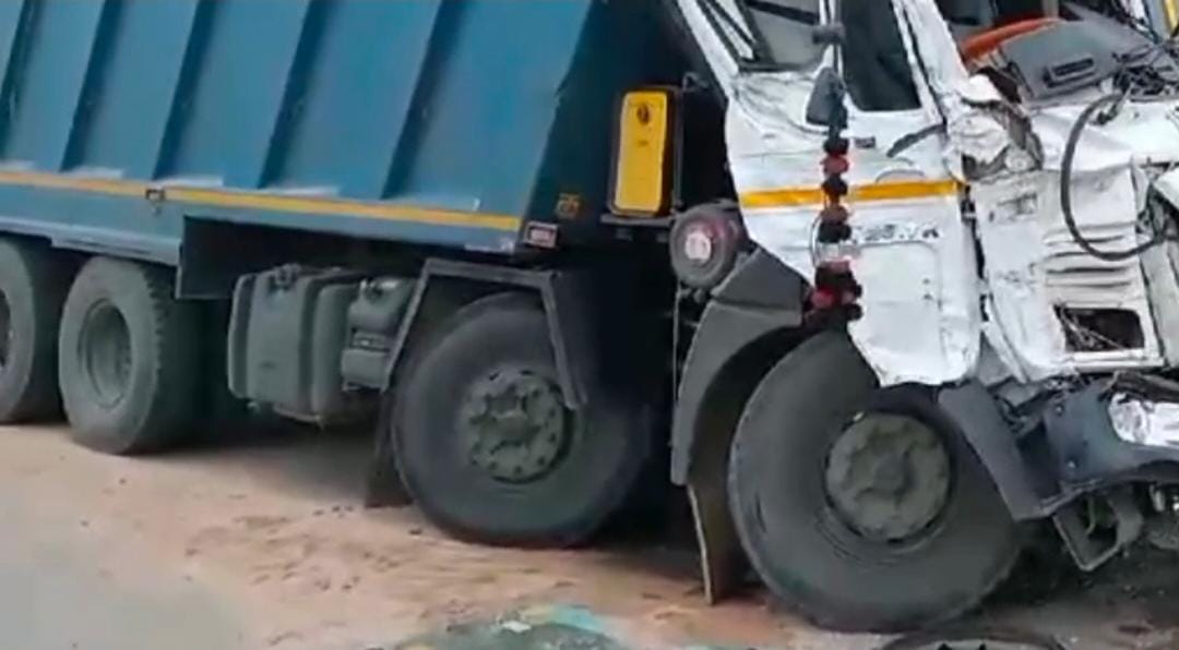 ଛିଡା ହୋଇଥିବା ଟ୍ରକ କୁ ପଛ ପଟୁ ଧକ୍କା ଦେଲା ଡ଼ମ୍ପର, ଅଳ୍ପକେ ବର୍ତ୍ତିଲେ ଚାଳକ