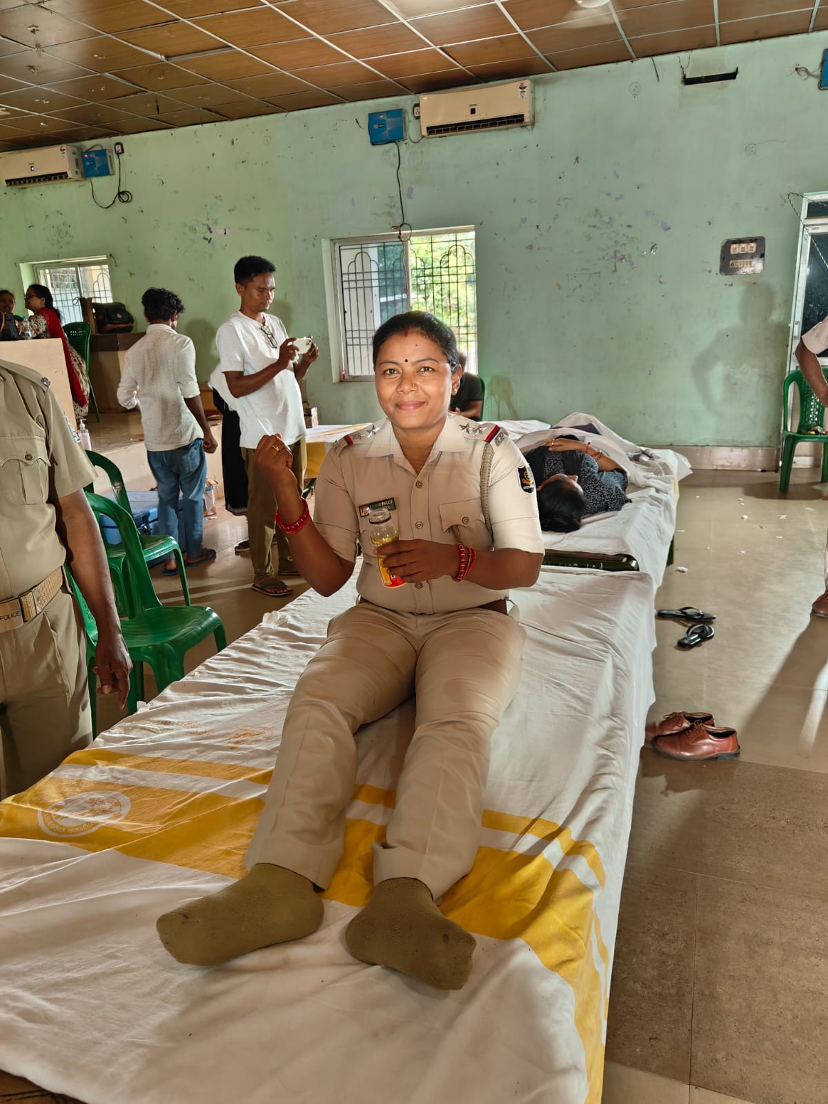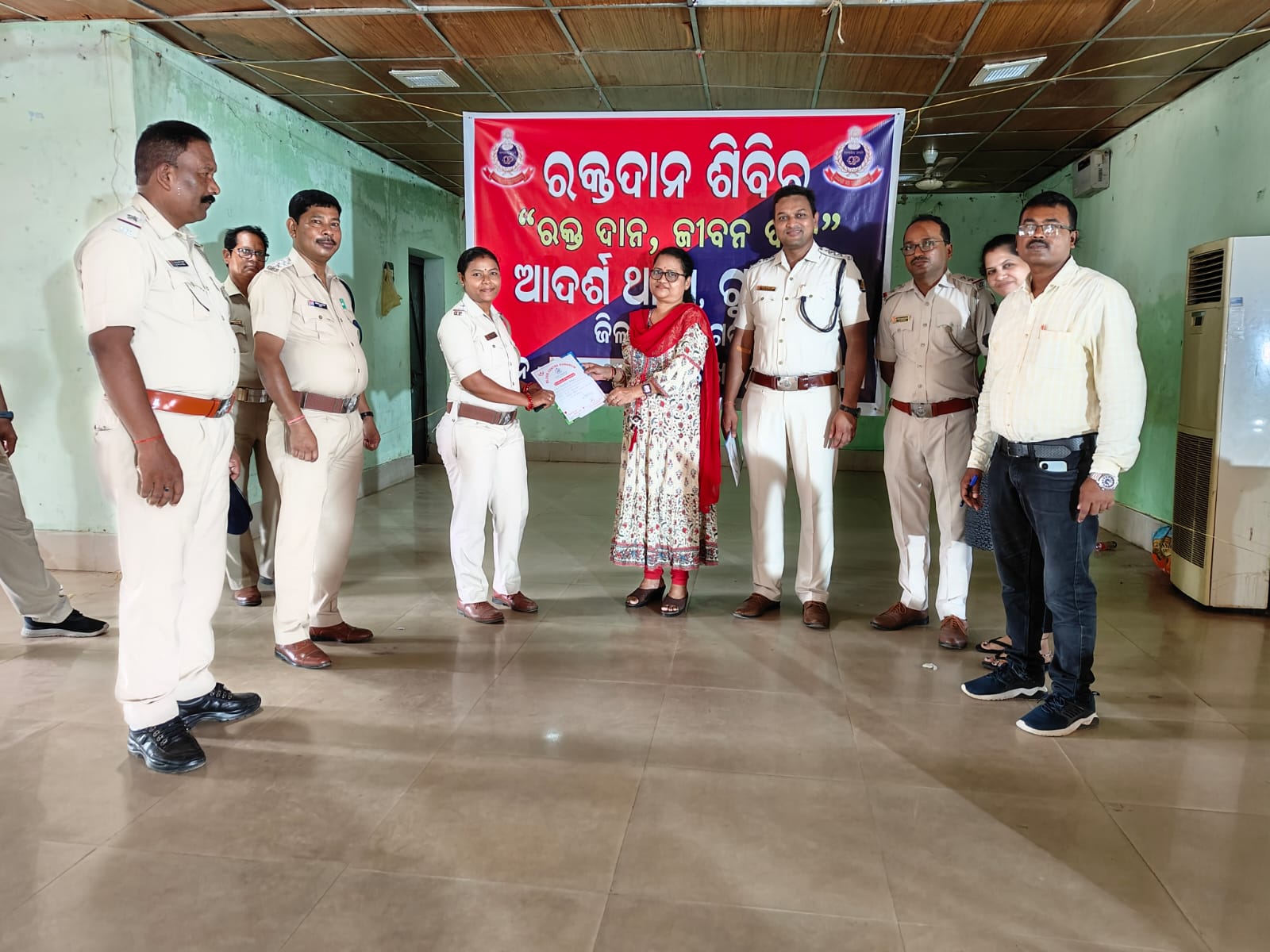 A blood donation camp refers to a camp where blood is collected by medical professionals from suitable donors of various blood groups for various recipients who are in dire need of blood for various medical conditions. Mr Sahu says 50 Donors participated in this camp and collected 50 units of blood from them.SI Chandra kant mahanti, SI Laxmi paraja, Constable Pratima mahapatra, Driver Dipak parida, Driver Khan participated in this noble job for Human being.