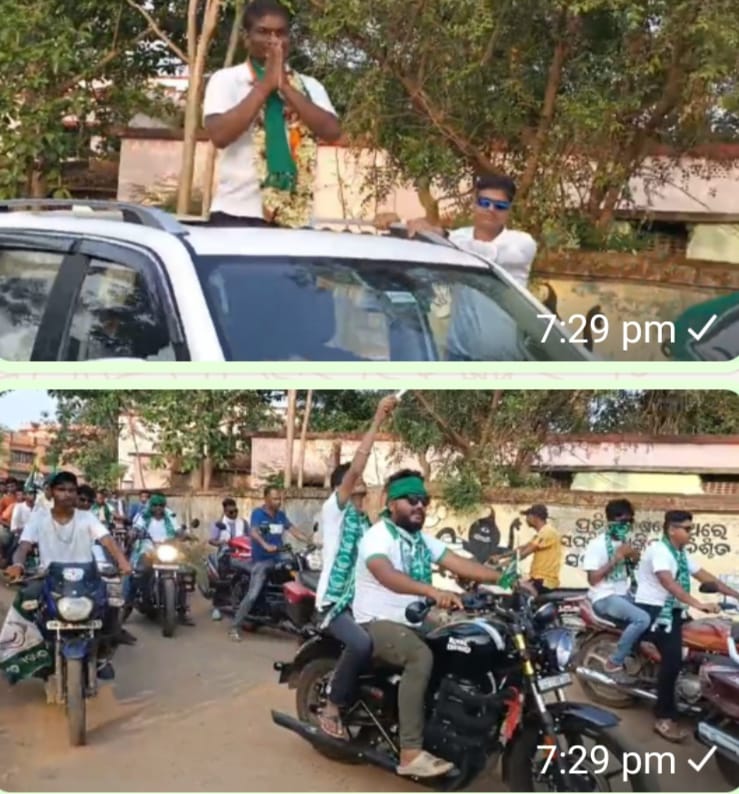 ରାଇରଙ୍ଗପୁରରେ ବିଜେଡି ବିଧାୟକ ପ୍ରାର୍ଥୀ ରାଇସେନ ମୁର୍ମୁ ଙ୍କ ବିଶାଳ ରୋଡ଼ ସୋ
