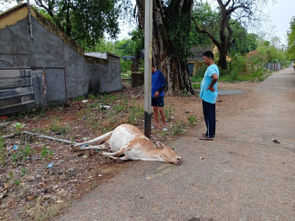 ବିଦ୍ୟୁତଖୁଣ୍ଟ ସଂସ୍ପର୍ଷରେ ଆସି ଗାଈ ମୃତ